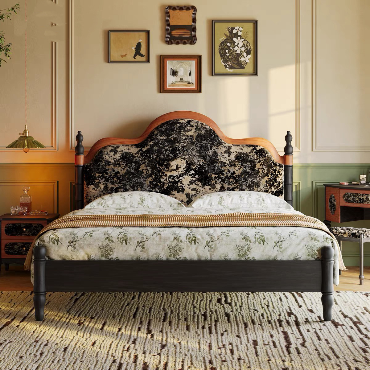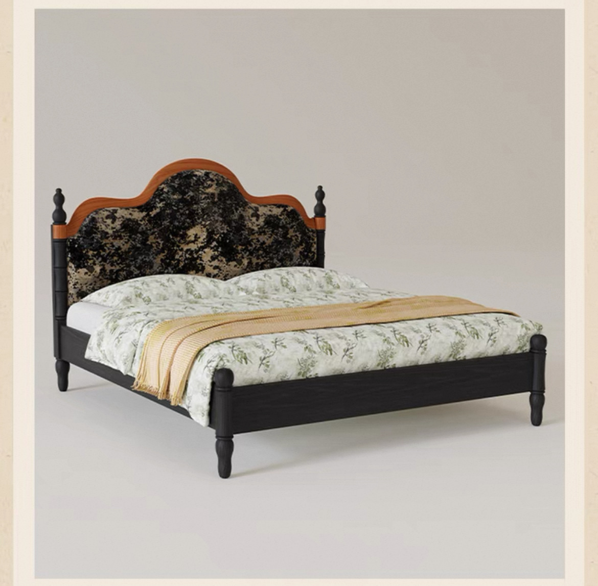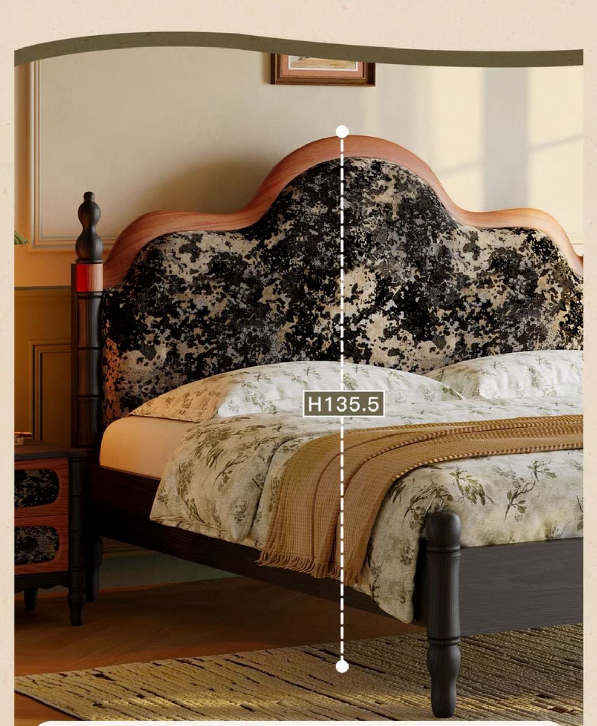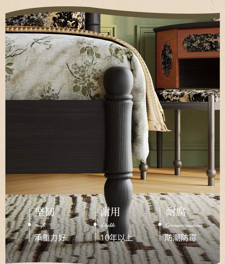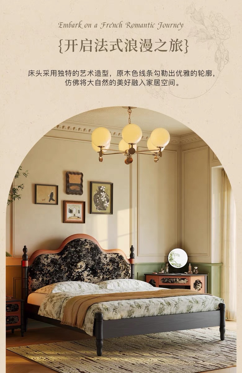 Французская ретро спальня из цельного дерева двуспальная кровать с высокой спинкой в стиле среднего стиля