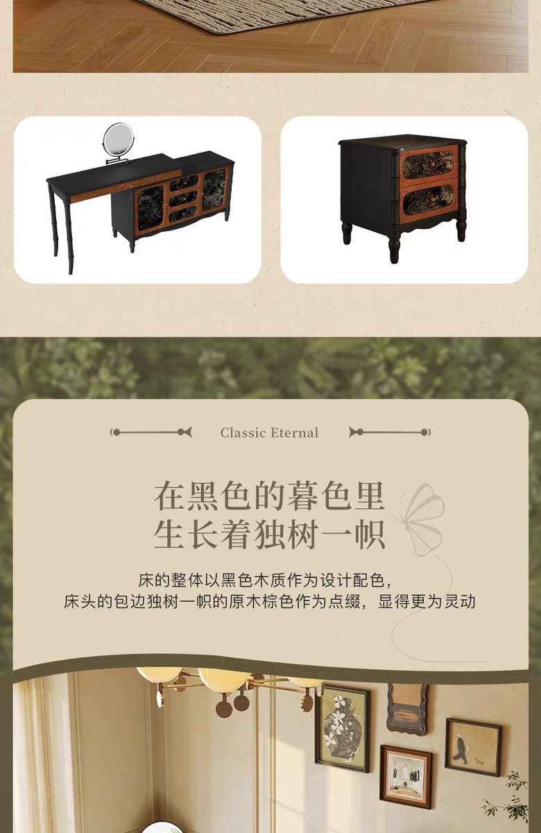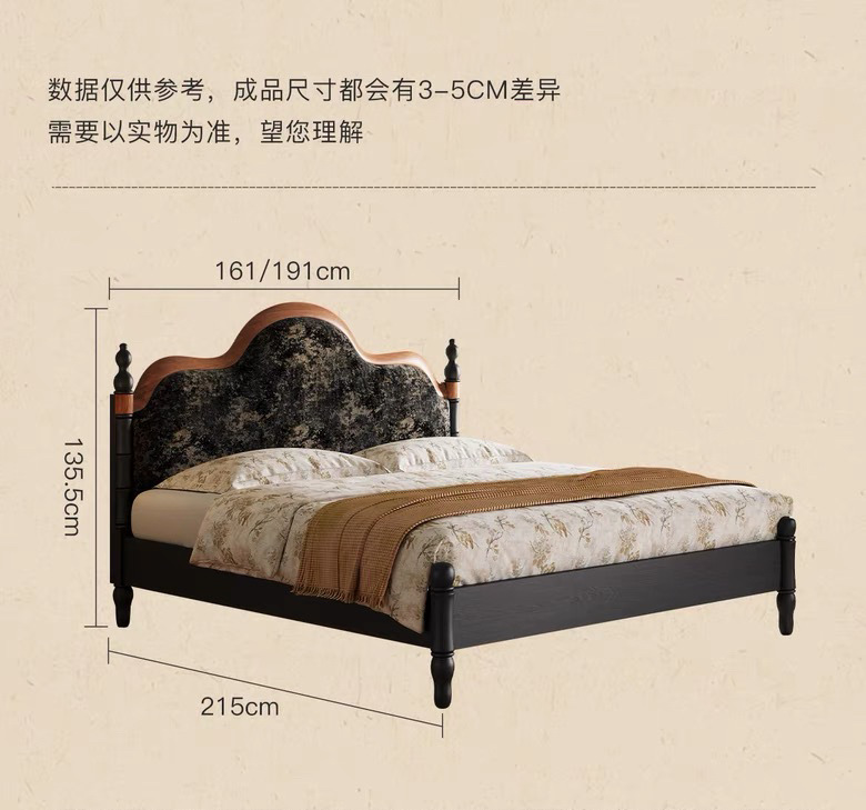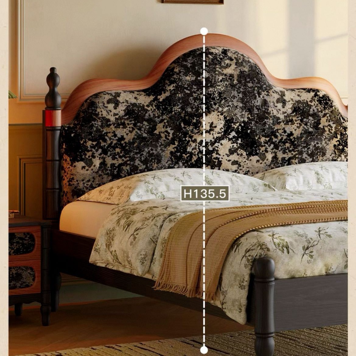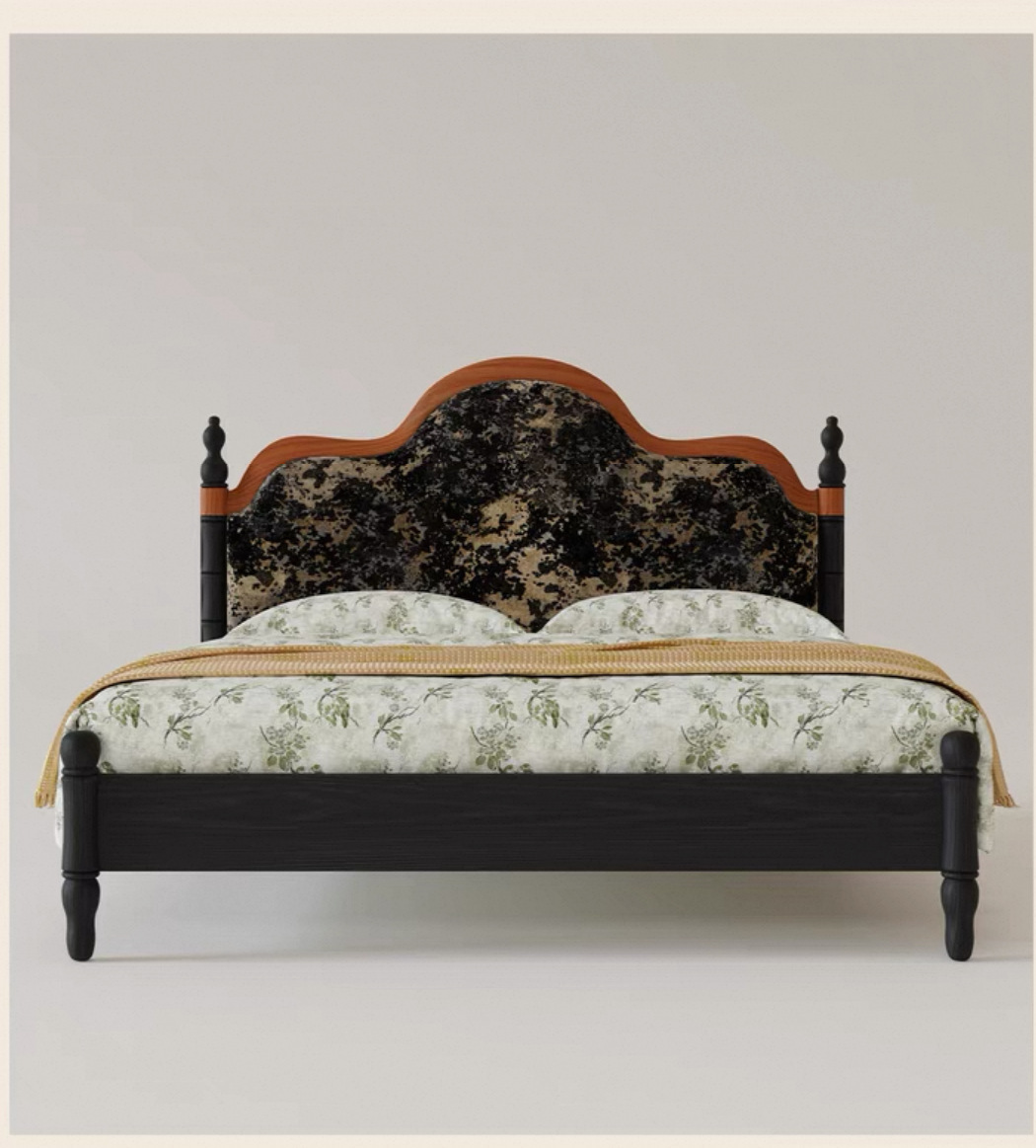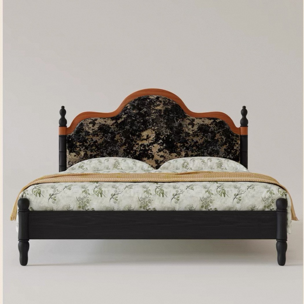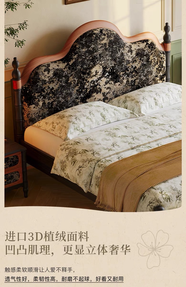 Французская ретро спальня из цельного дерева двуспальная кровать с высокой спинкой в стиле среднего стиля