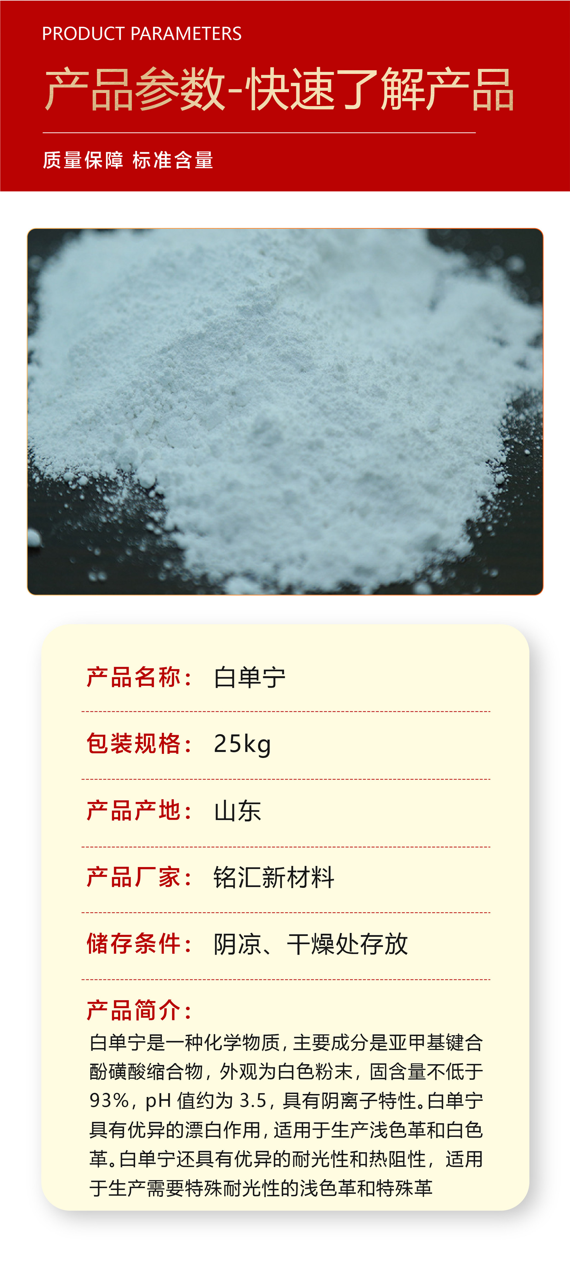 Производитель белого танина имеет в наличии агент для обработки кожи, обладающий светостойкостью, заполнительными свойствами, отбеливающими свойствами и высоким содержанием белого танина.