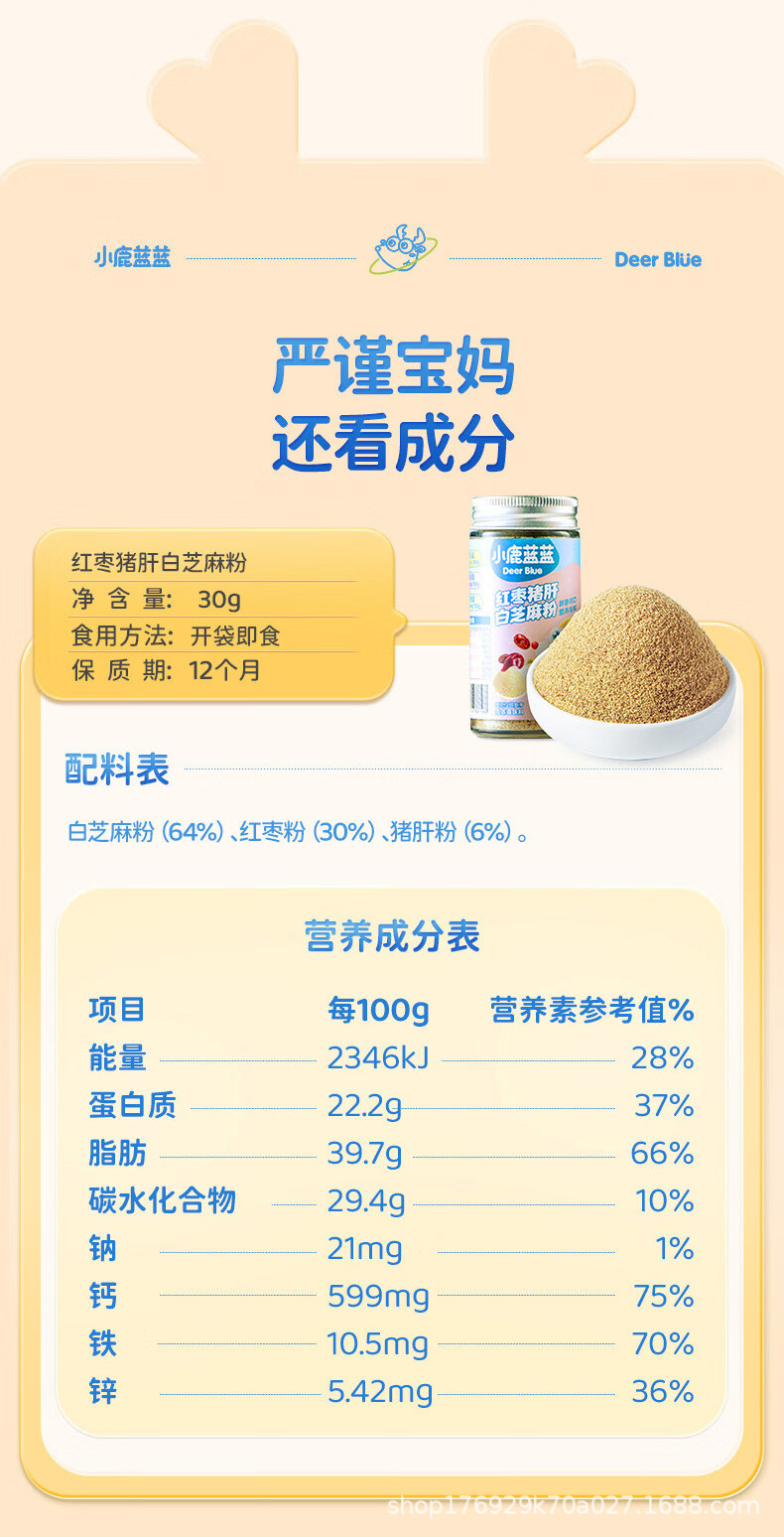 Приправа для детского риса Little Deer с красными финиками, свиной печенкой и черным кунжутом, питательная добавка для завтрака и каши