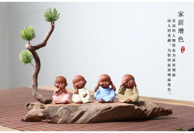 Чайный питомник фиолетовый песок четыре не маленький монах керамический чайный сервиз микро-ландшафтный мини-декоративные поделки оптом