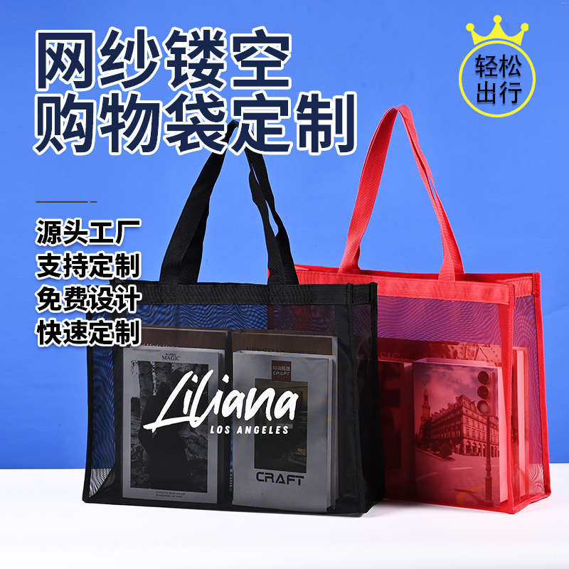 Внешняя торговля, трансграничная прозрачная нейлоновая сетчатая сумка, большая вместительная пляжная сумка, полая сетчатая сумка для покупок для плавания и путешествий