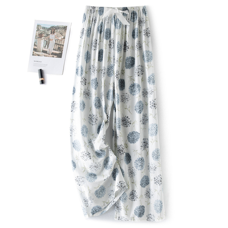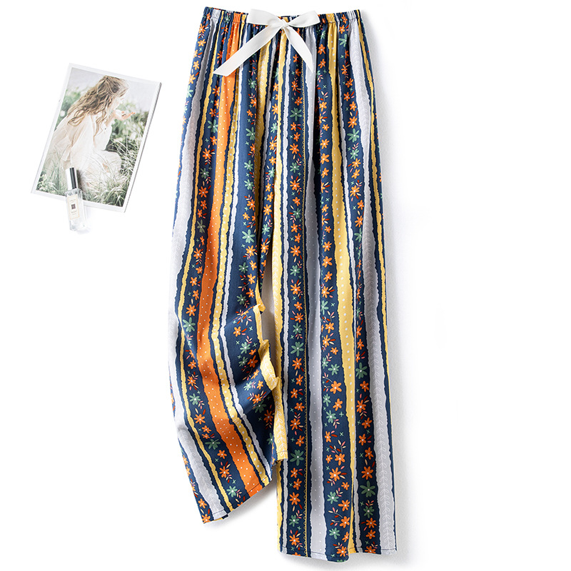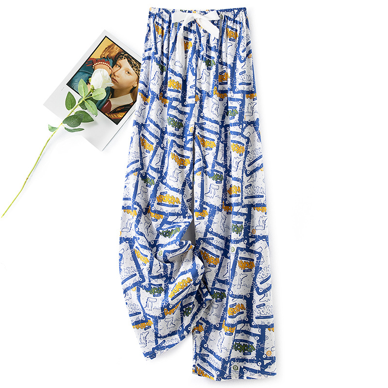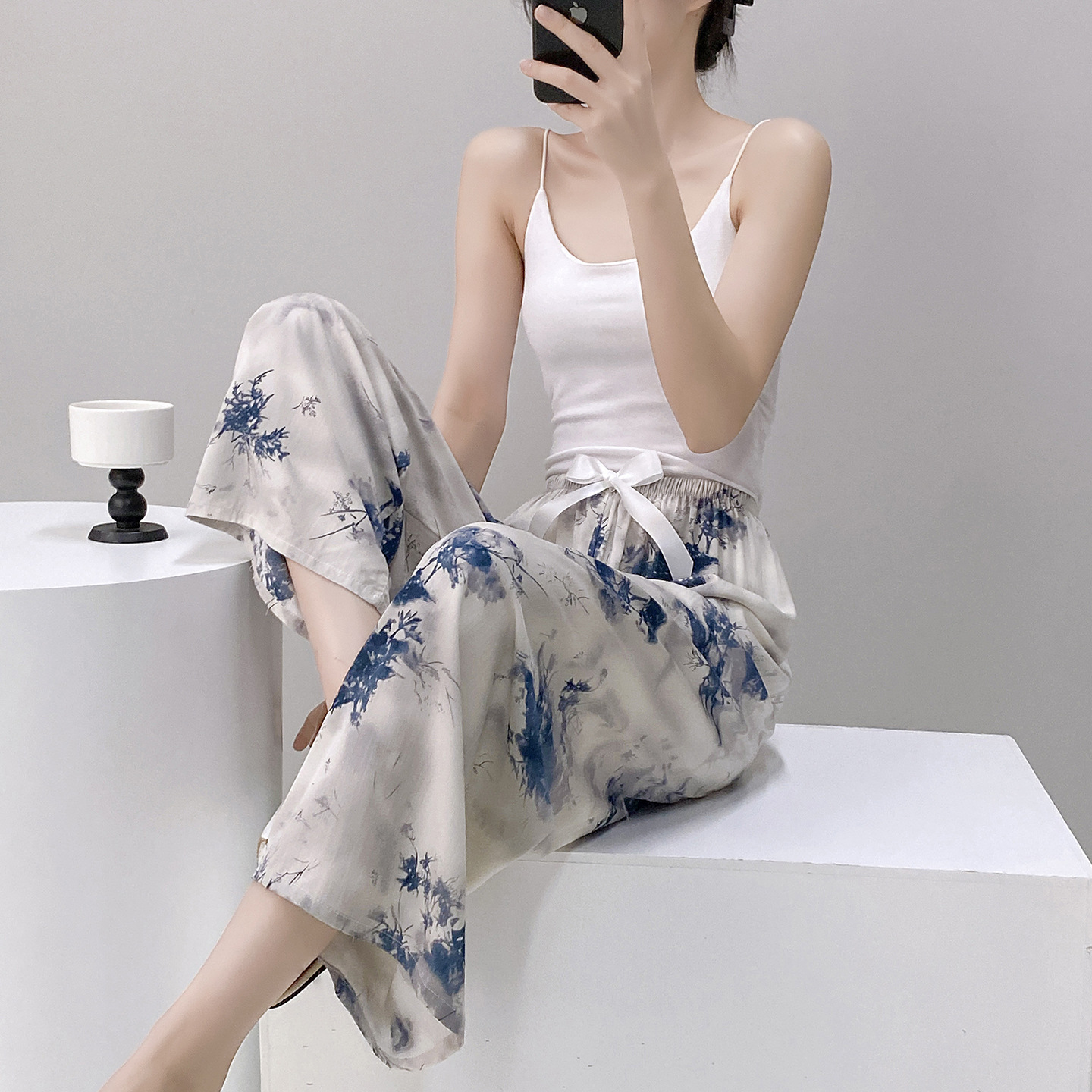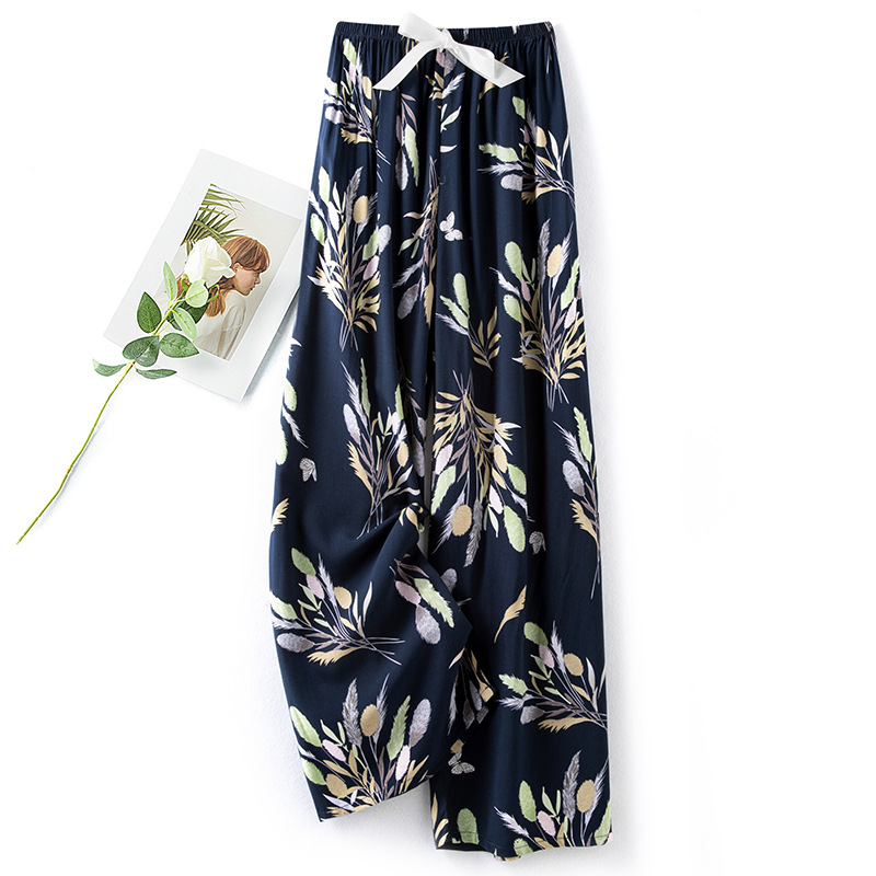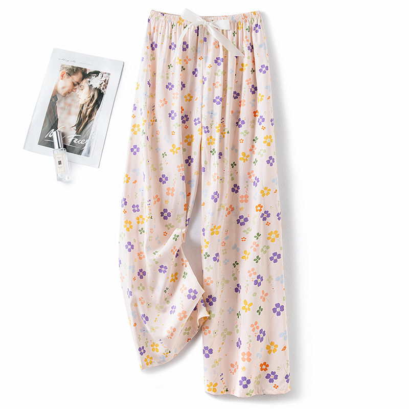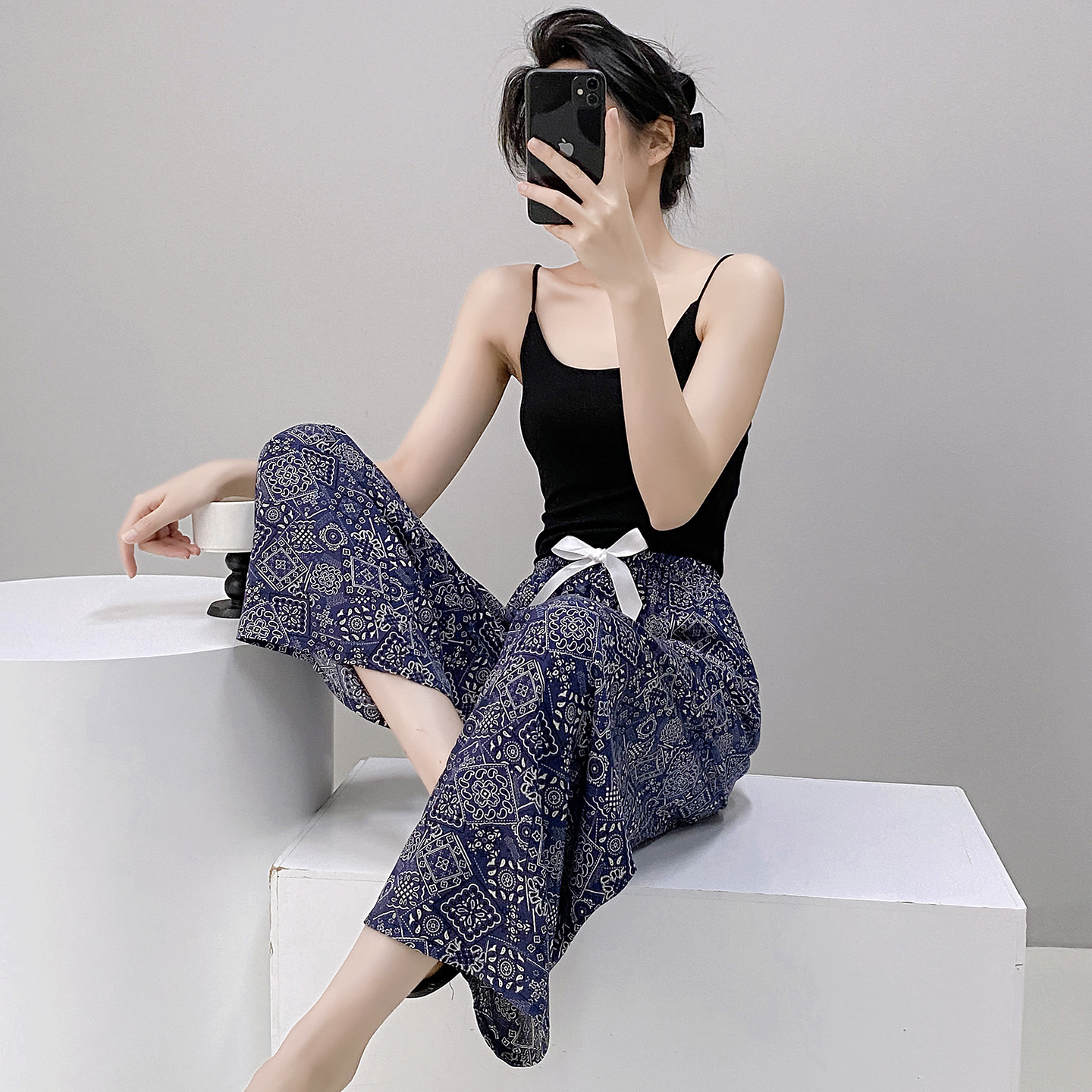 Хлопковые шелковые пижамы женские летние тонкие искусственные хлопчатобумажные широкие брюки весной и осенью носить свободные домашние повседневные девятиминные брюки