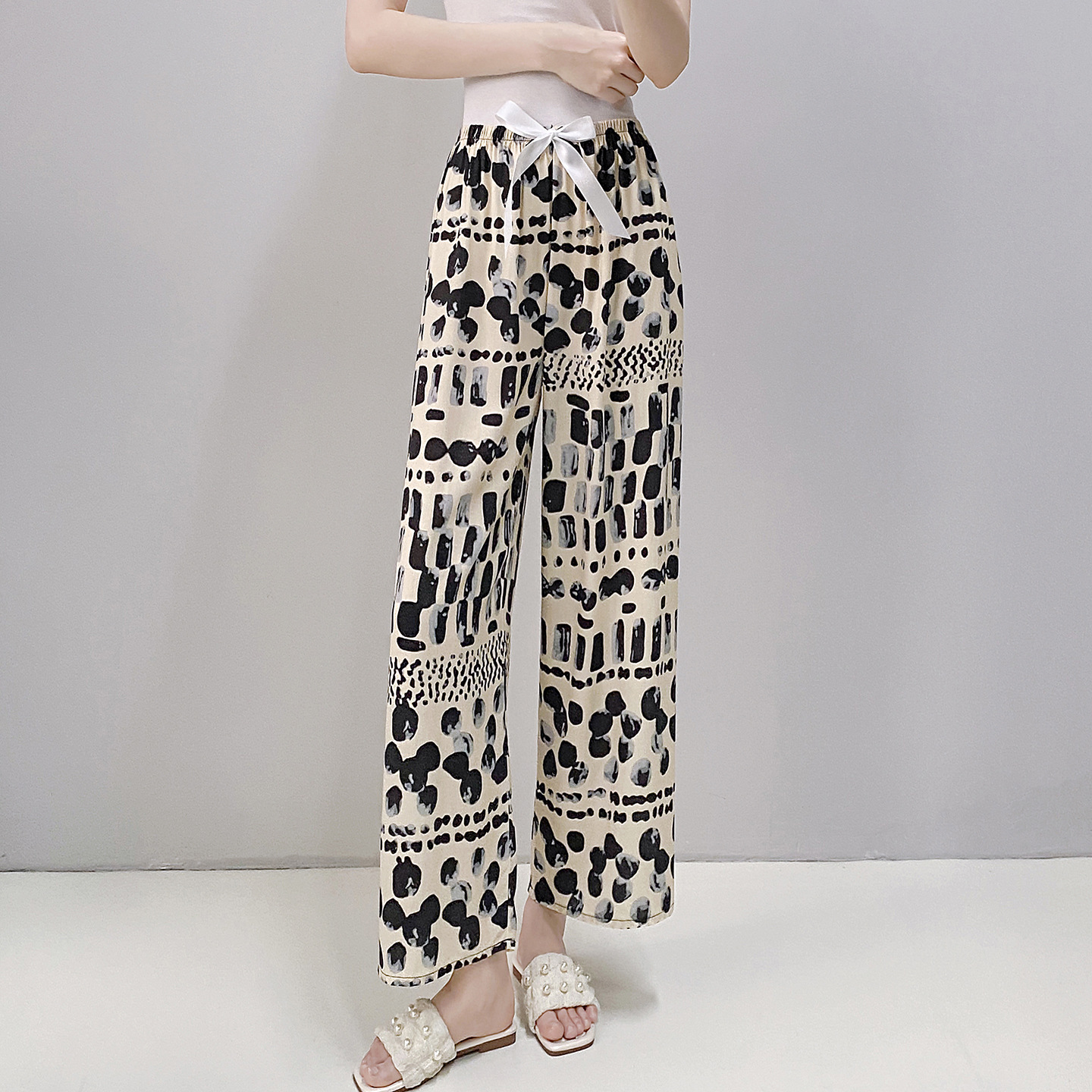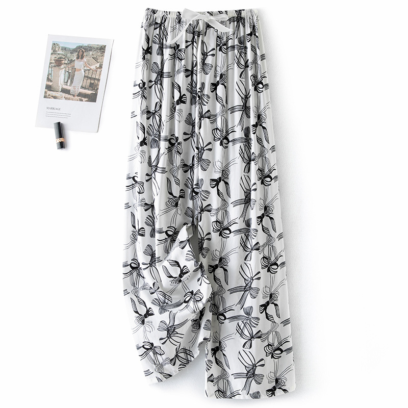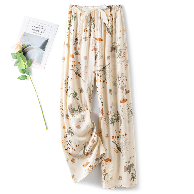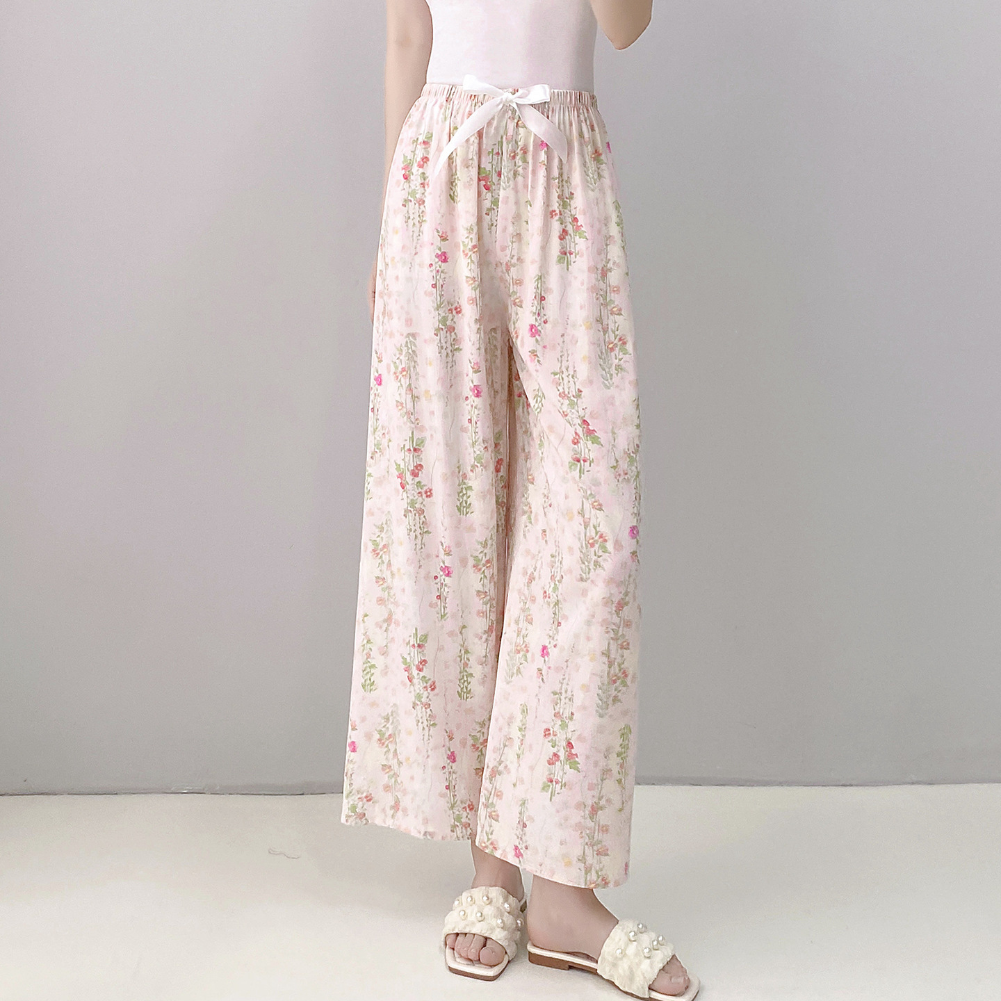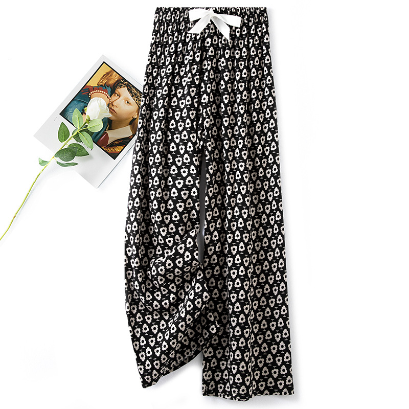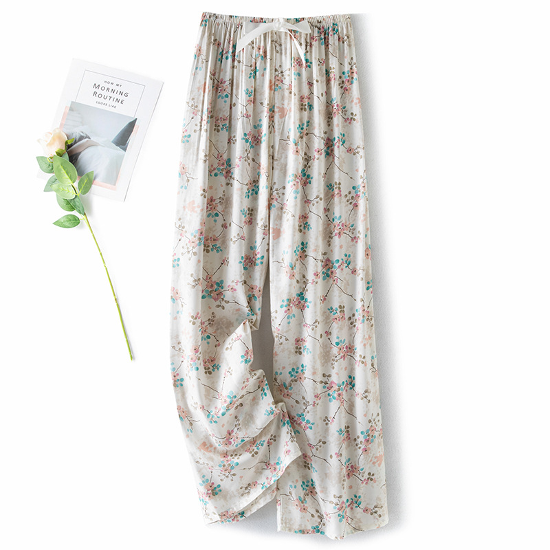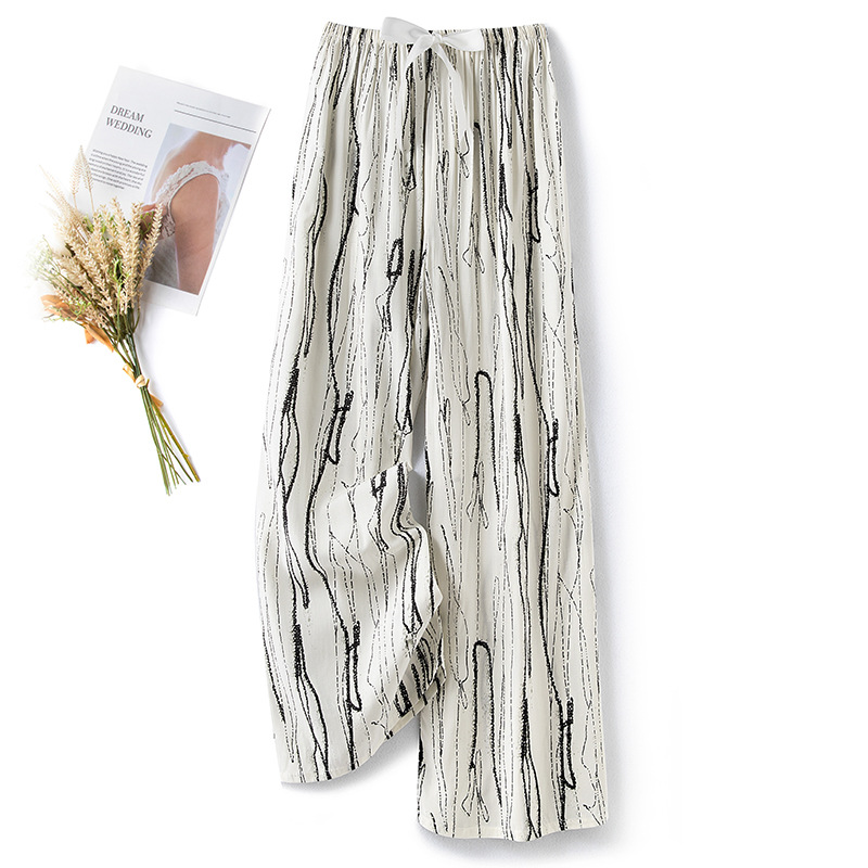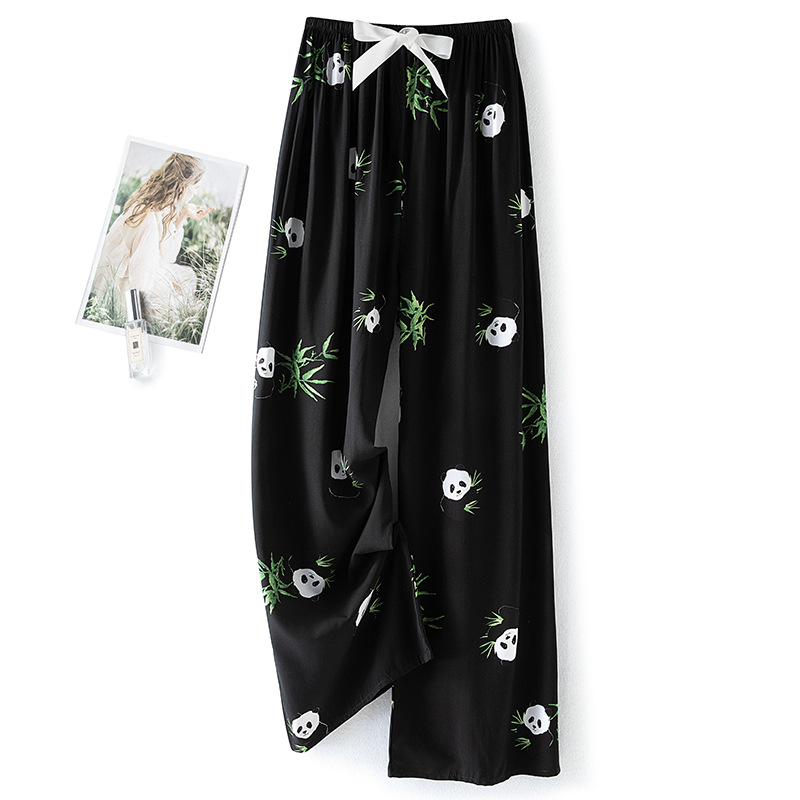 Хлопковые шелковые пижамы женские летние тонкие искусственные хлопчатобумажные широкие брюки весной и осенью носить свободные домашние повседневные девятиминные брюки