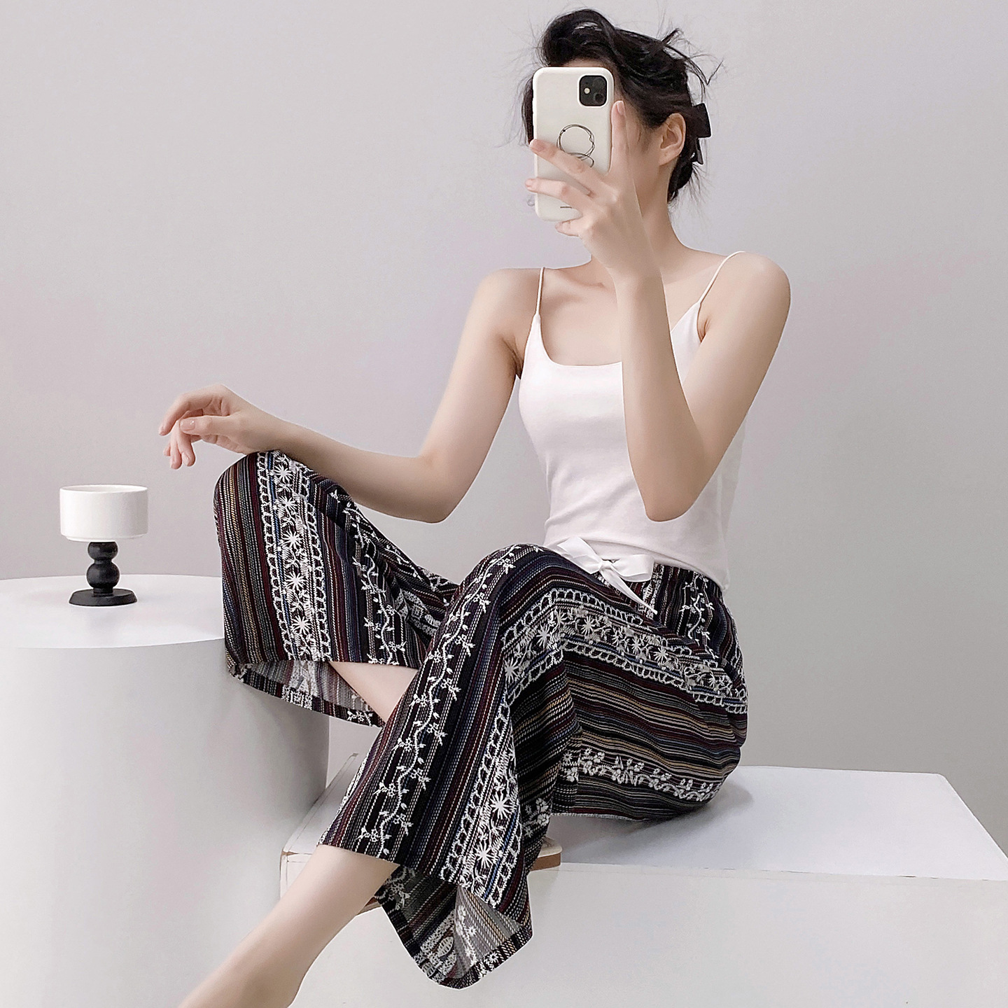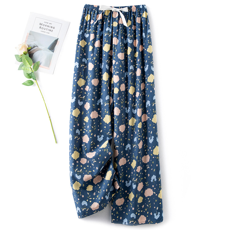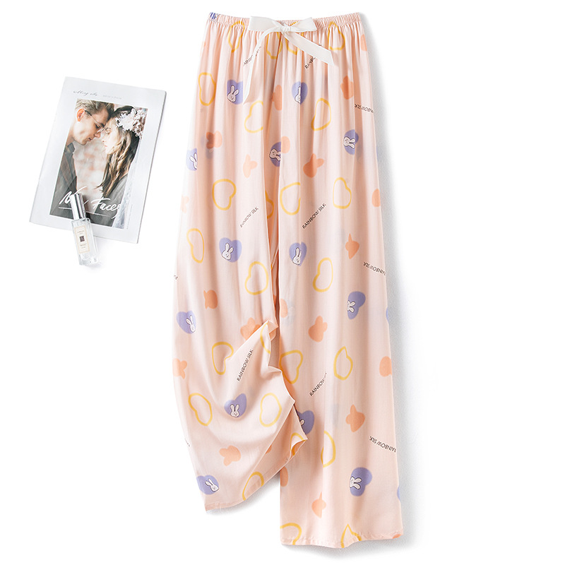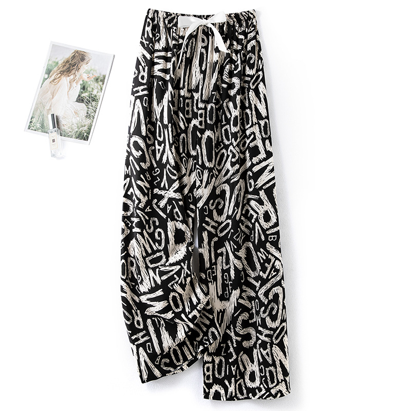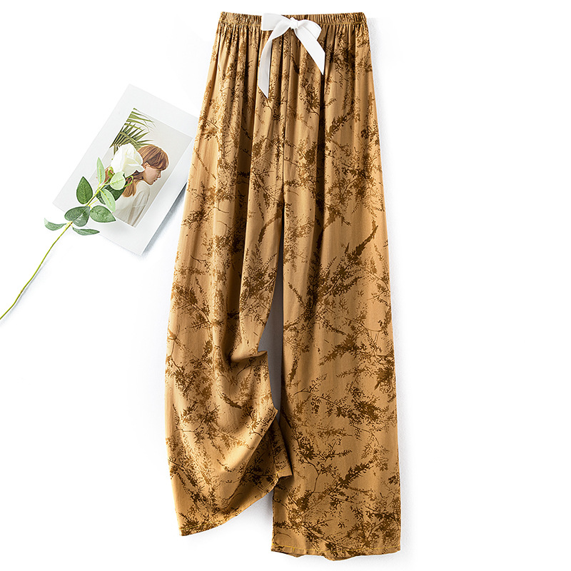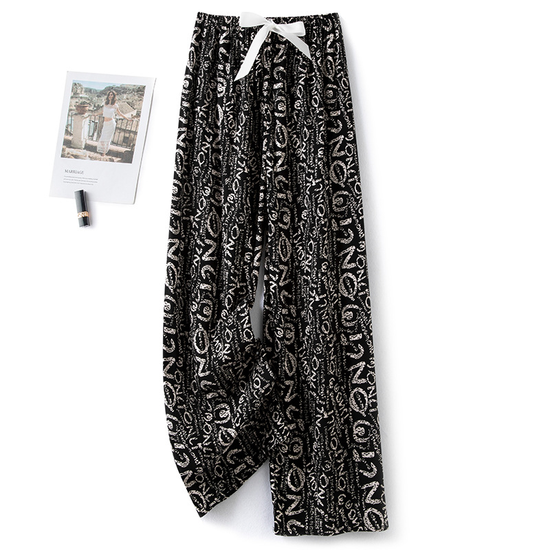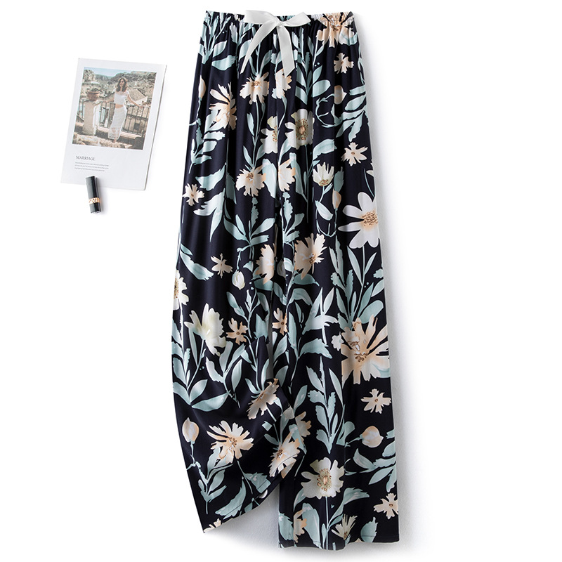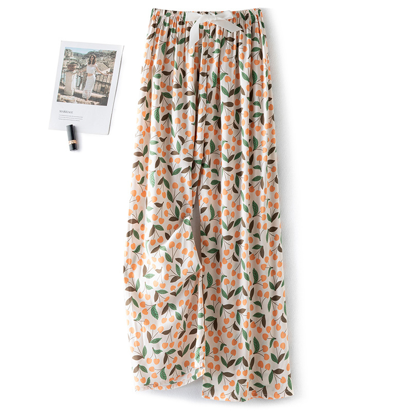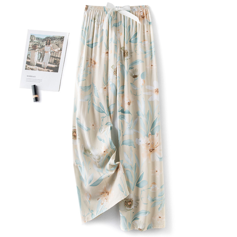 Хлопковые шелковые пижамы женские летние тонкие искусственные хлопчатобумажные широкие брюки весной и осенью носить свободные домашние повседневные девятиминные брюки