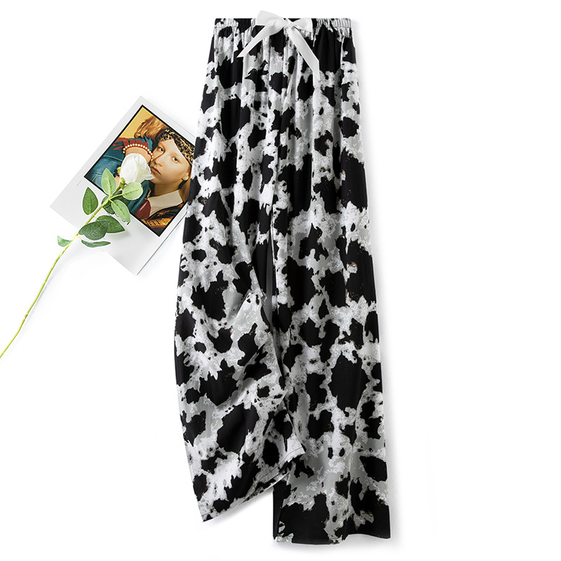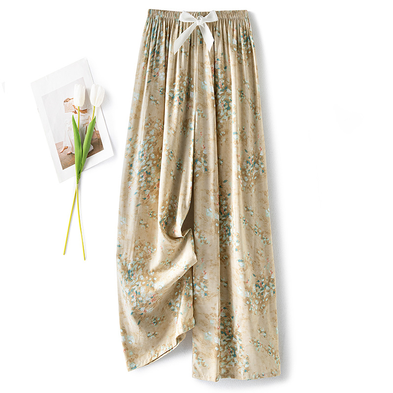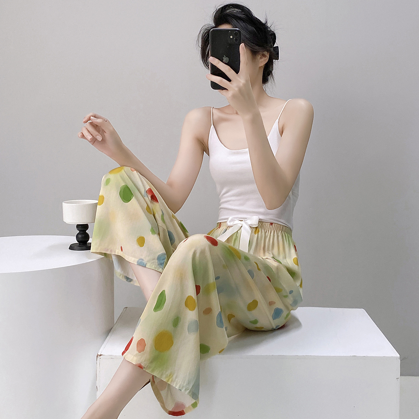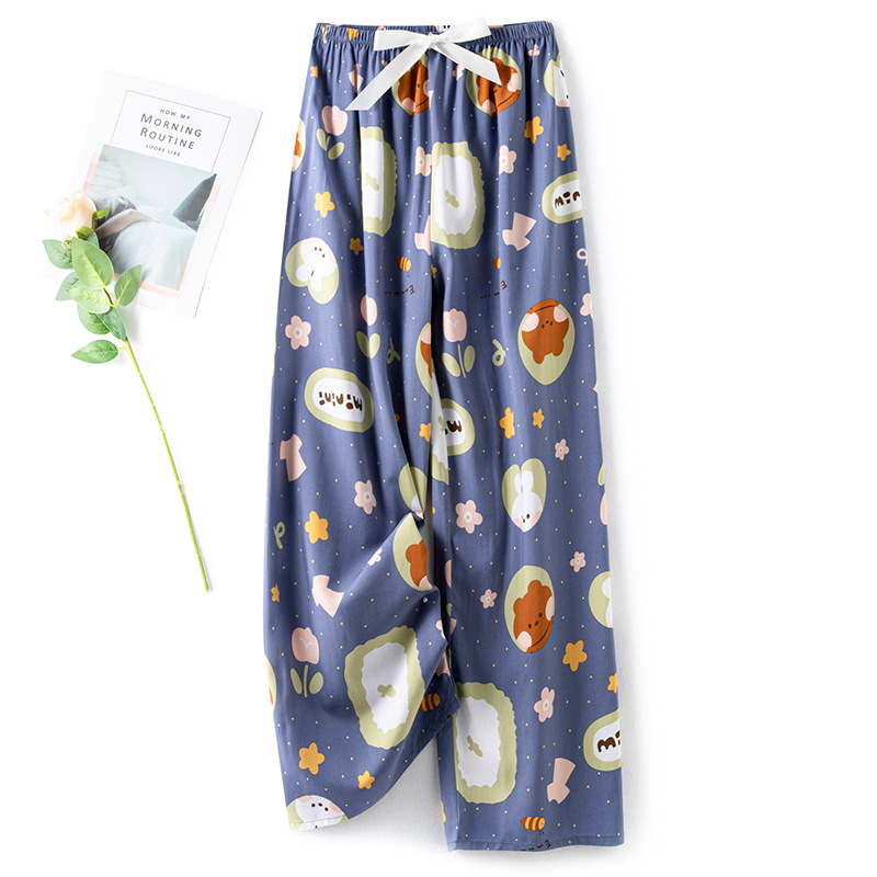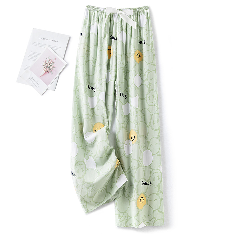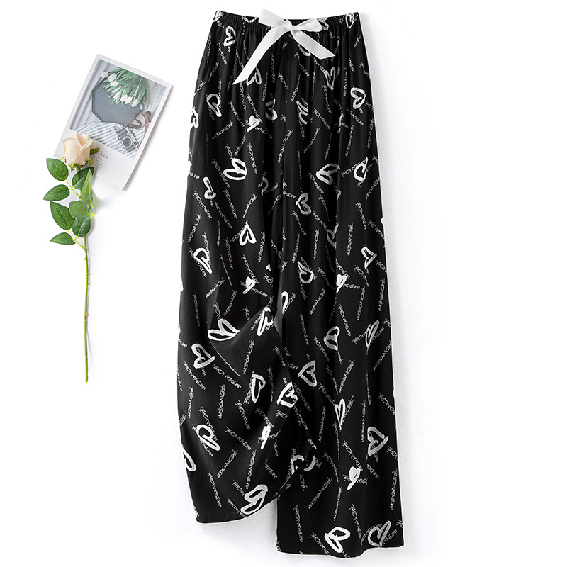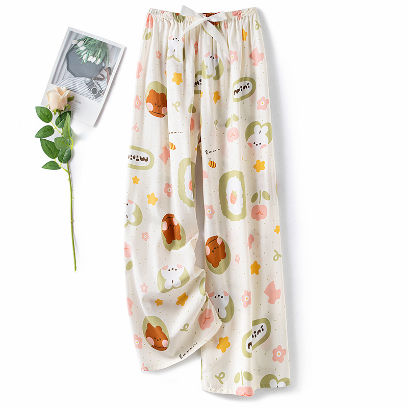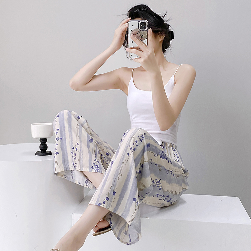 Хлопковые шелковые пижамы женские летние тонкие искусственные хлопчатобумажные широкие брюки весной и осенью носить свободные домашние повседневные девятиминные брюки