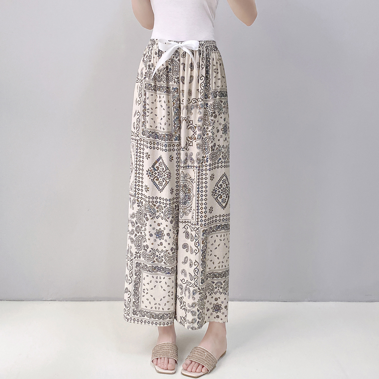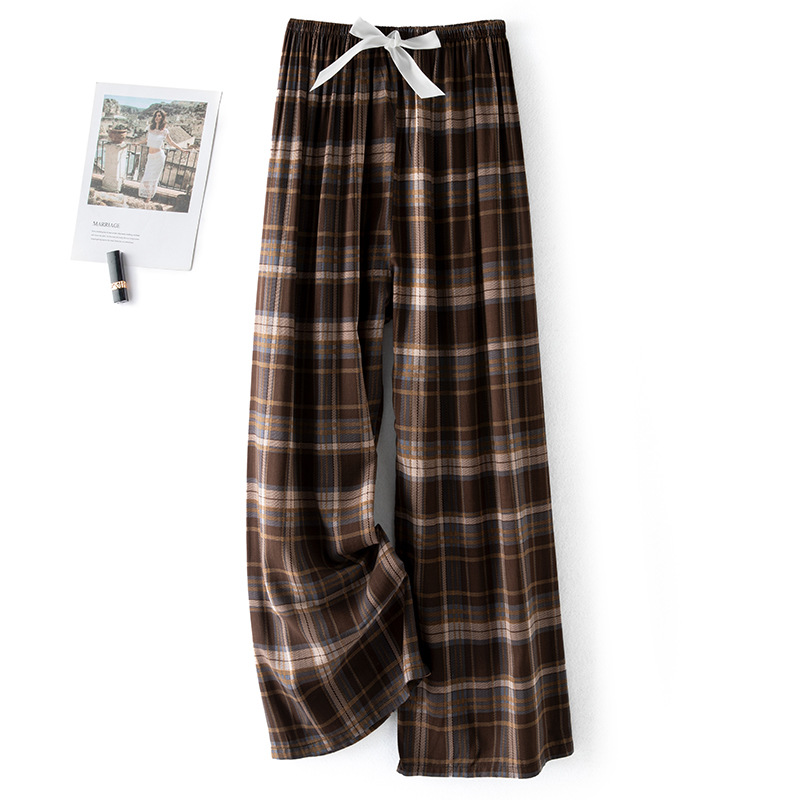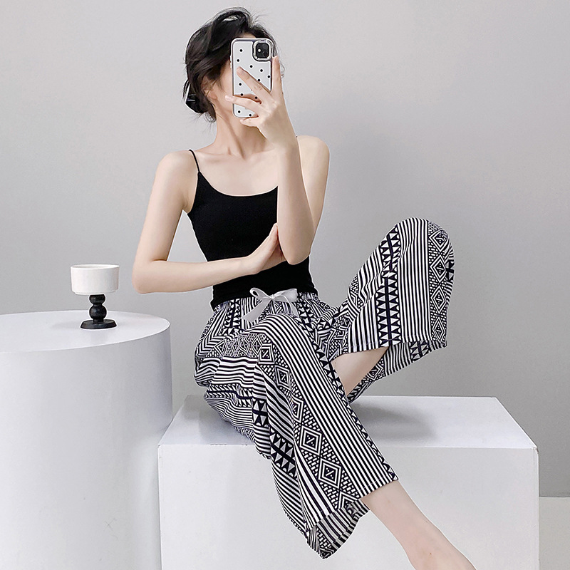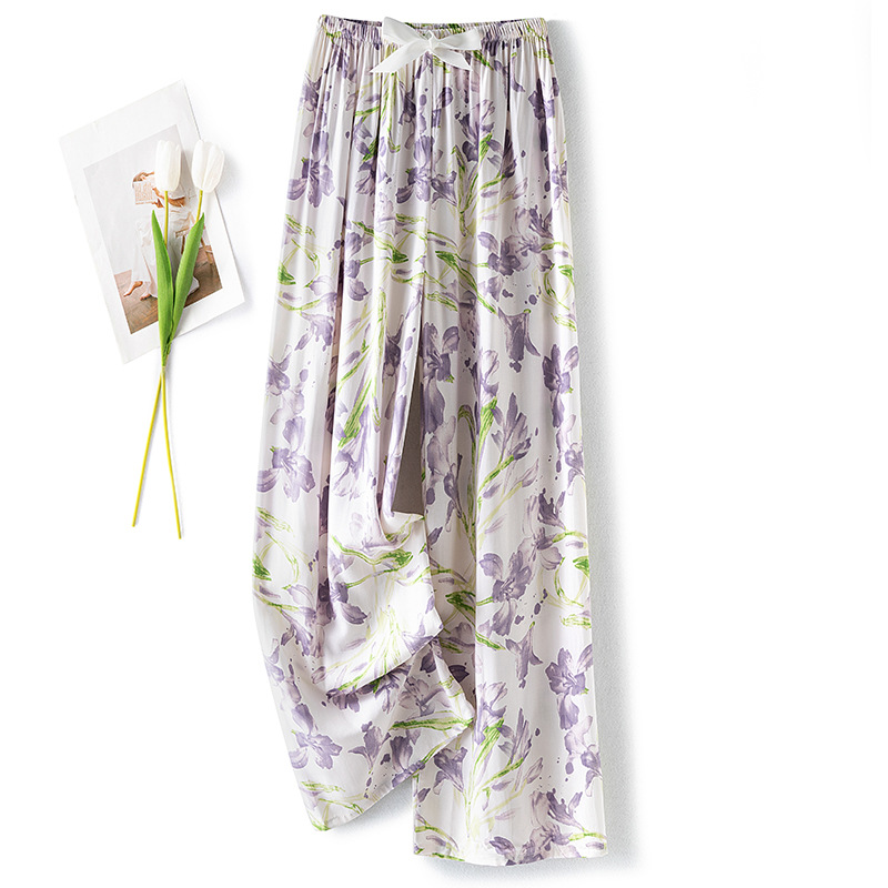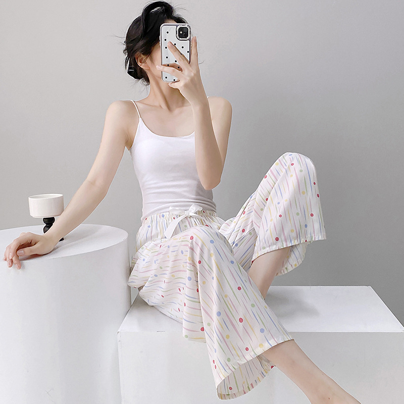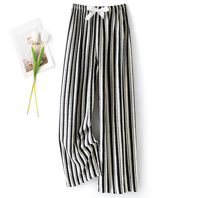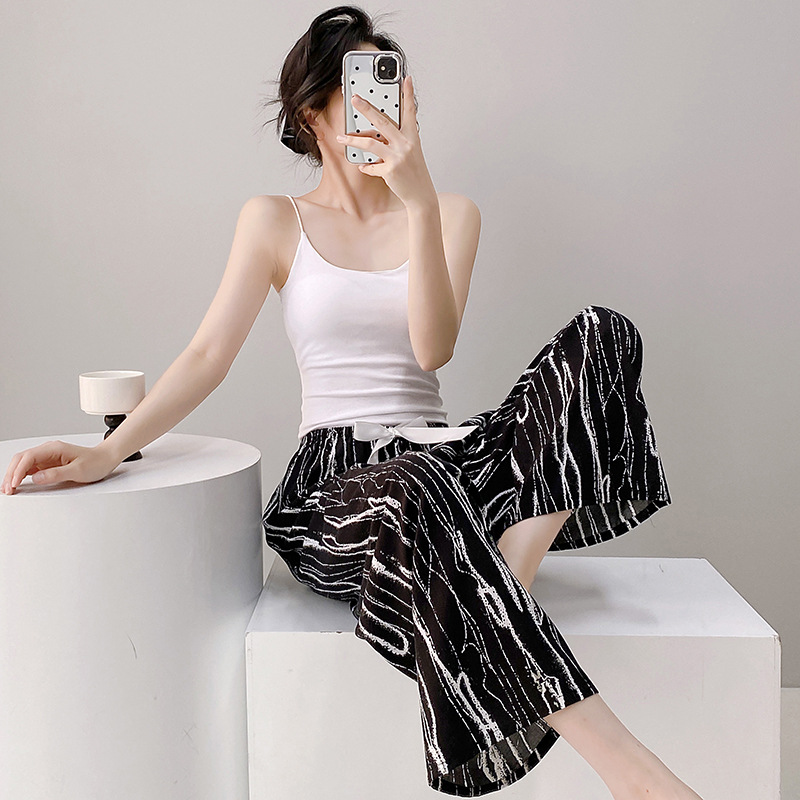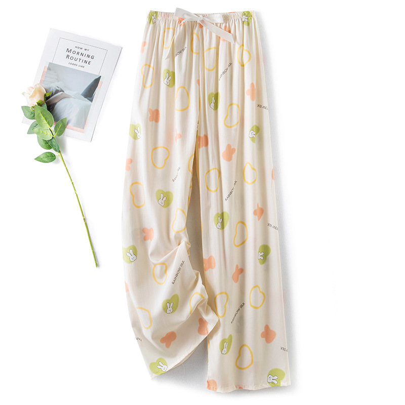 Хлопковые шелковые пижамы женские летние тонкие искусственные хлопчатобумажные широкие брюки весной и осенью носить свободные домашние повседневные девятиминные брюки