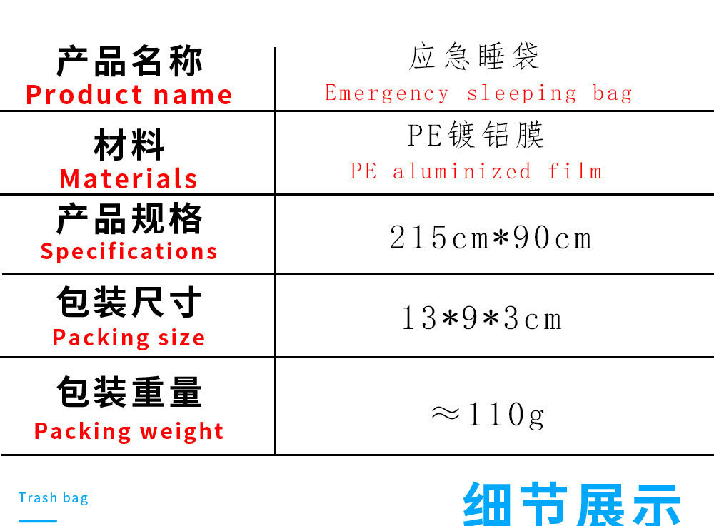 Открытый полевой туризм многофункциональная аварийная изоляция жизни PE градусов алюминиевая пленка спальный мешок светоотражающие самопомощь портативные палатки