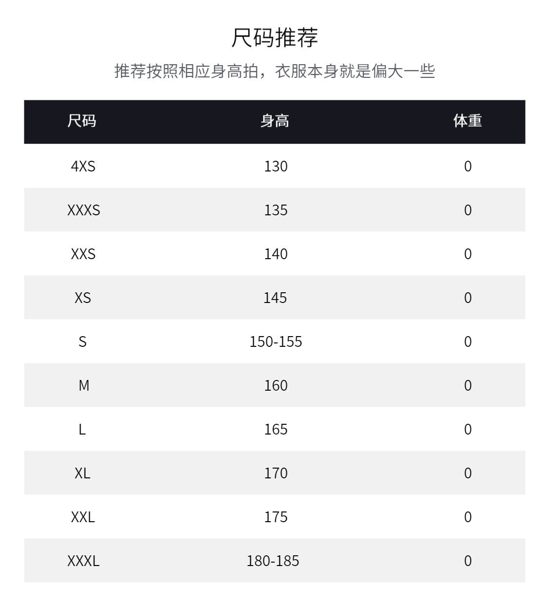 6XS; 5XS; 4XS; XXXS; XXS; XS; S; M; L; XL; XXL; XXXL; XXXXL