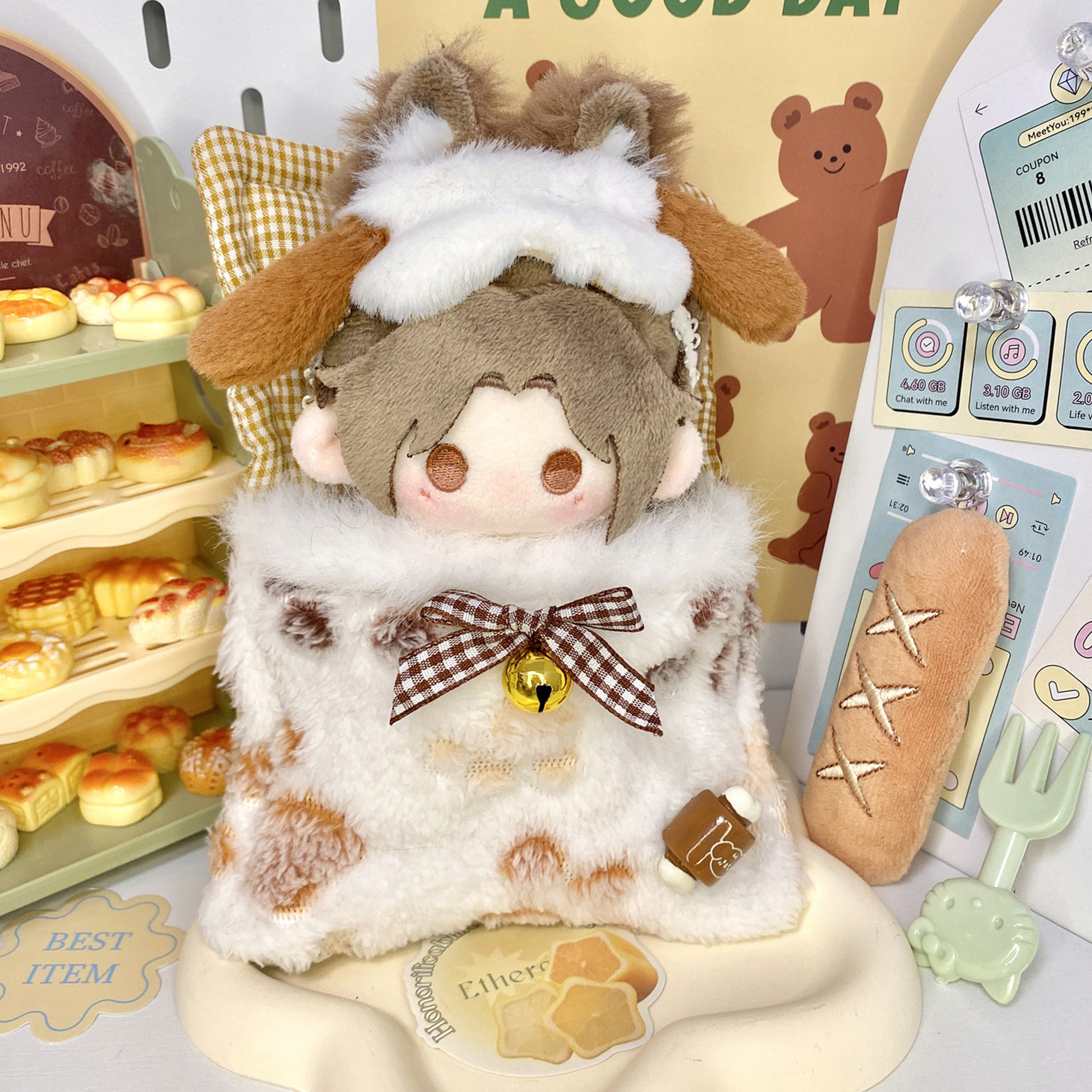 Раунд Кокос Латте (Топ + Брюки); Пузырьки солевого пара (топ + штаны); Джинсовые подтяжки (повязка + топ + брюки); Плюшевый торт (наушники + шарф + топ + юбка); Пряничный мишка (наушники + шарф + топ + юбка); Теплый солнечный свет зимой (наушники + шарф + топ + юбка); Маленький бог богатства (шапка + пояс + сумка на удачу); Нежа без штанов (пояс + воротник + аксессуары для волос); Версия брюк Нежа (пояс + воротник + аксессуары для волос + брюки); Sea Salt Boy (шапка + топ + жилет + галстук-бабочка + брюки); Пижама «Доброй ночи» (розовая); Пижама «Доброй ночи» (синяя); спальный мешок для цыпленка; Спальный мешок Маленький Медвежонок; спальный мешок с кроликом; красная толстовка; черная толстовка; Алиса (аксессуары для волос + юбка); Розовый персиковый молочный коктейль (головной убор + фартук + основная юбка); Сине-мятный ирис (головной убор + фартук + основная юбка); Apple Tea Pie (платок + основная юбка + подкладка); Маленький Яблочко (головной убор + комбинезон); Sweetheart Party (шапка + топ + комбинезон); Таро грязевой поп (шапка + топ + куртка + брюки); Французский маленький плащ (шапка + плащ); Подтяжки FirstDay (шапка + топ + комбинезон); Синее платье принцессы (диадема + основная юбка); Банан (шапка + комбинезон + зажим для крыльев); Цирковой детеныш слона (аксессуары для волос + шарф + комбинезон); Цирковой клоун (аксессуары для волос + шарф + комбинезон); Марио (шапка + свитер + комбинезон); Стиль Яби черный и красный (шапка + топ + брюки + гитара); Стиль Яби черно-белый (шапка + топ + брюки + гитара); Розовая студенческая форма Сакура (топ + юбка); Униформа колледжа желтого сыра (топ + юбка); Студенческая форма синего цвета (топ + юбка); Красная студенческая форма Чжоуба (топ + жилет + брюки); Черный Chanel (шляпа + юбка); Лumberjack Bear (шапка + топ + комбинезон); Медведь Бэйпяо (шапка + топ + комбинезон); Рожденный к солнцу (шапка + топ + комбинезон); Микки (повязка на голову + топ + брюки + рюкзак); Маленькая лягушка (шляпа + комбинезон + ручной лист лотоса); Гаофей (шапка + топ + комбинезон + камера); Happy Mouse (шапка + комбинезон + ручной леденцов); Щенок на день рождения (шапка + галстук-бабочка + комбинезон); Синий купальник (купальник + шапочка); Синий купальник (купальник + шапочка + кольцо для плавания); Синий купальник (купальник + шапочка + кольцо для плавания + очки); Красный купальник (купальник + шапочка); Красный купальник (купальник + шапочка + кольцо для плавания); Красный купальник (купальник + шапочка + кольцо для плавания + очки); Розовый купальник (купальник + шапочка); Розовый купальник (купальник + шапочка + кольцо для плавания); Розовый купальник (купальник + шапочка + кольцо для плавания + очки); Белый купальник (купальник + шапочка); Белый купальник (купальник + шапочка + кольцо для плавания); Белый купальник (купальник + шапочка + кольцо для плавания + очки); Костюм с юбкой D (аксессуары для волос + юбка); Брючный костюм D (шапка + топ + брюки); Ведьма House Emergency (аксессуары для волос + юбка + метла); Запеченный медведь (шапка + топ + брюки); Жареные креветки (жареные креветки + пакетик для соуса)