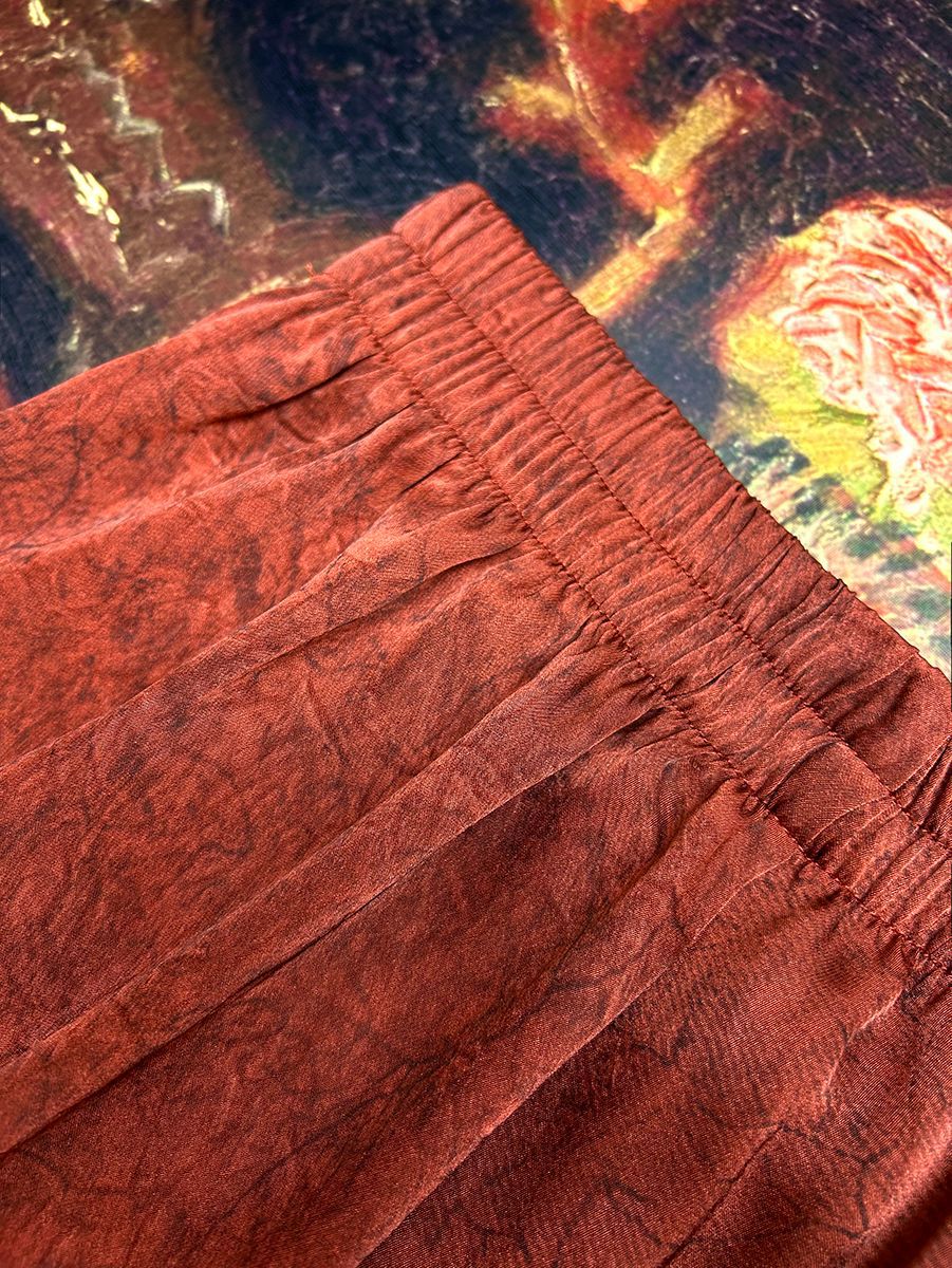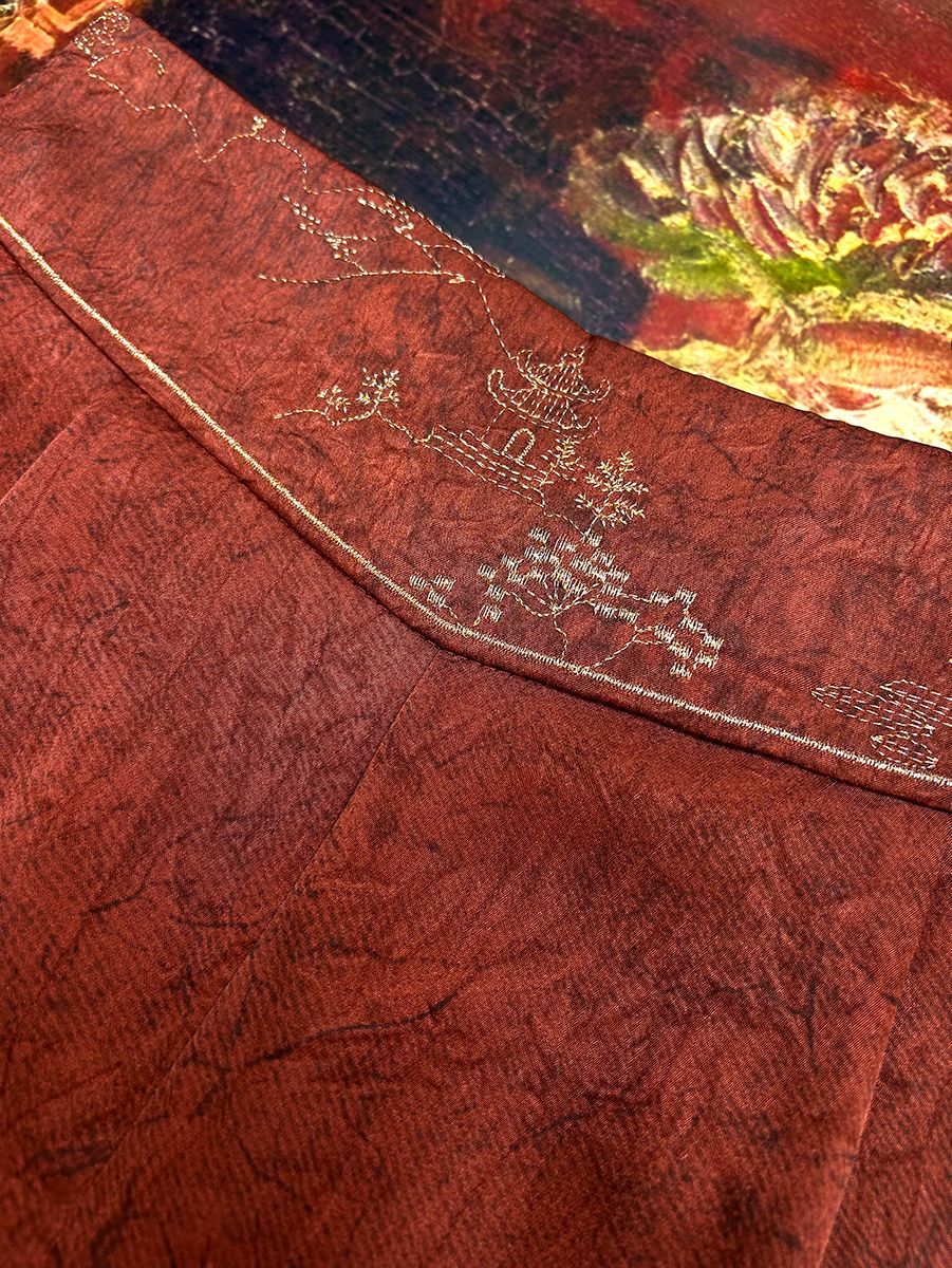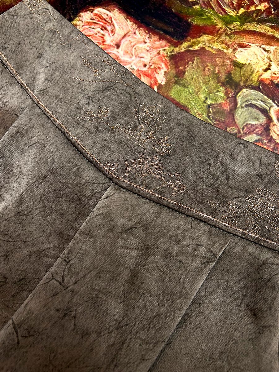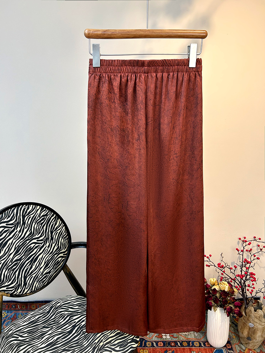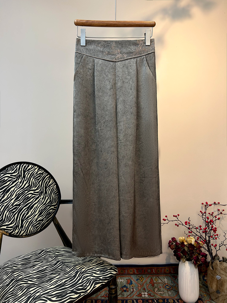 2025 новый блеск атласные широкие брюки с высокой талией вышивка легкая новая страна стиль эластические брюки повседневная женщина