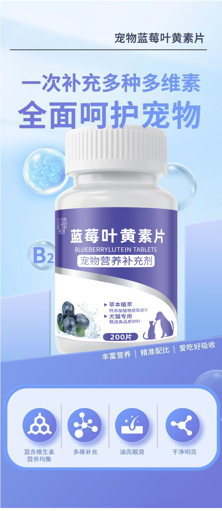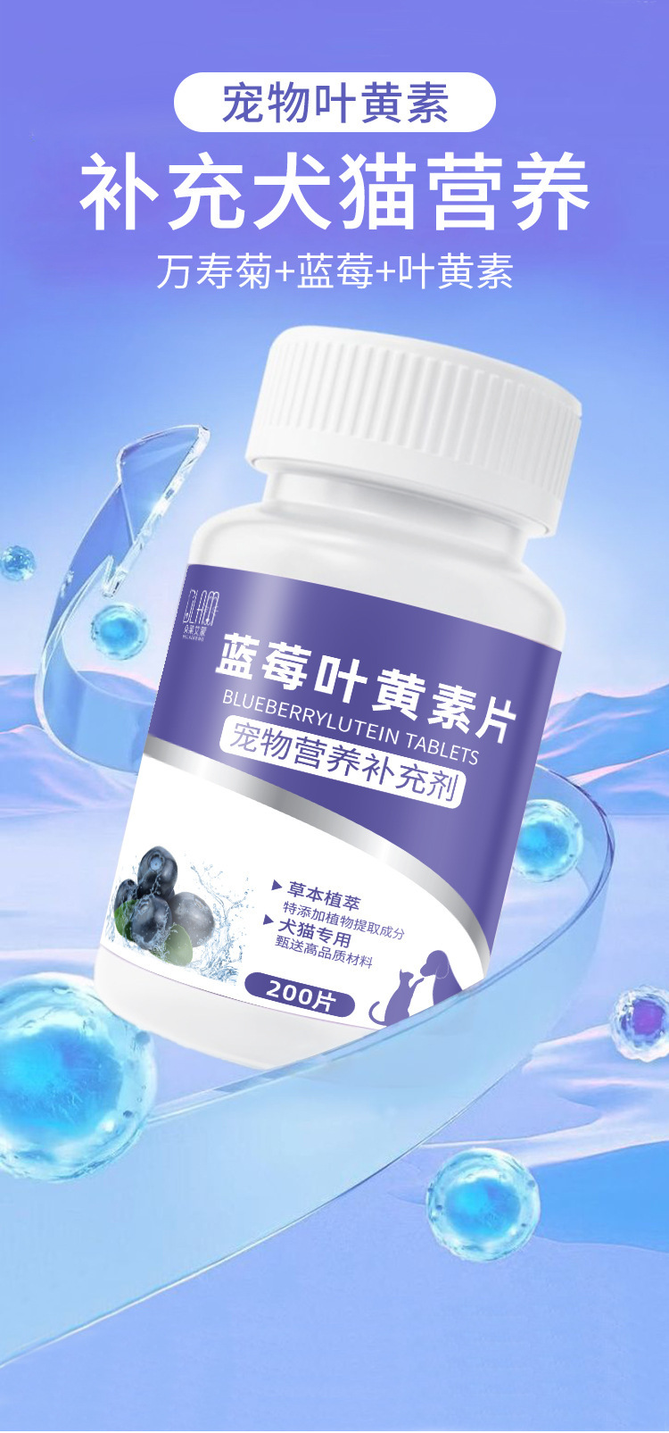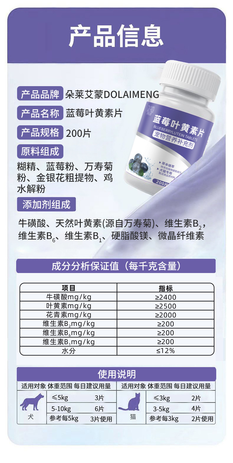 Dole Aimeng Pet Blueberry Lutein Pet Cat Tear Stain Dog Nutrition Питает, успокаивает зрение и глаза
