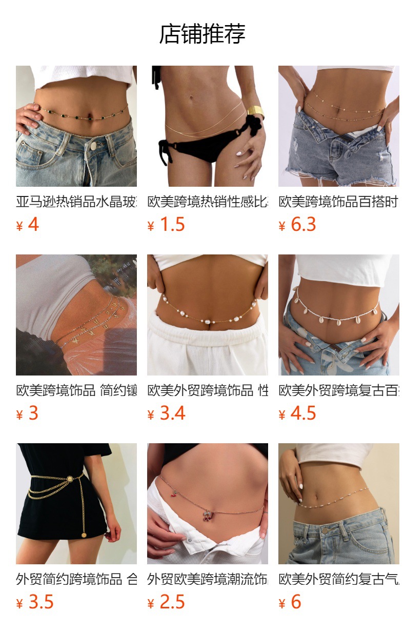 Европейская и американская трансграничная бижутерия: двухслойная цепочка из сплава с простыми круглыми бусинами, женская пляжная цепочка на талию, сексуальная уличная повседневная цепочка для тела