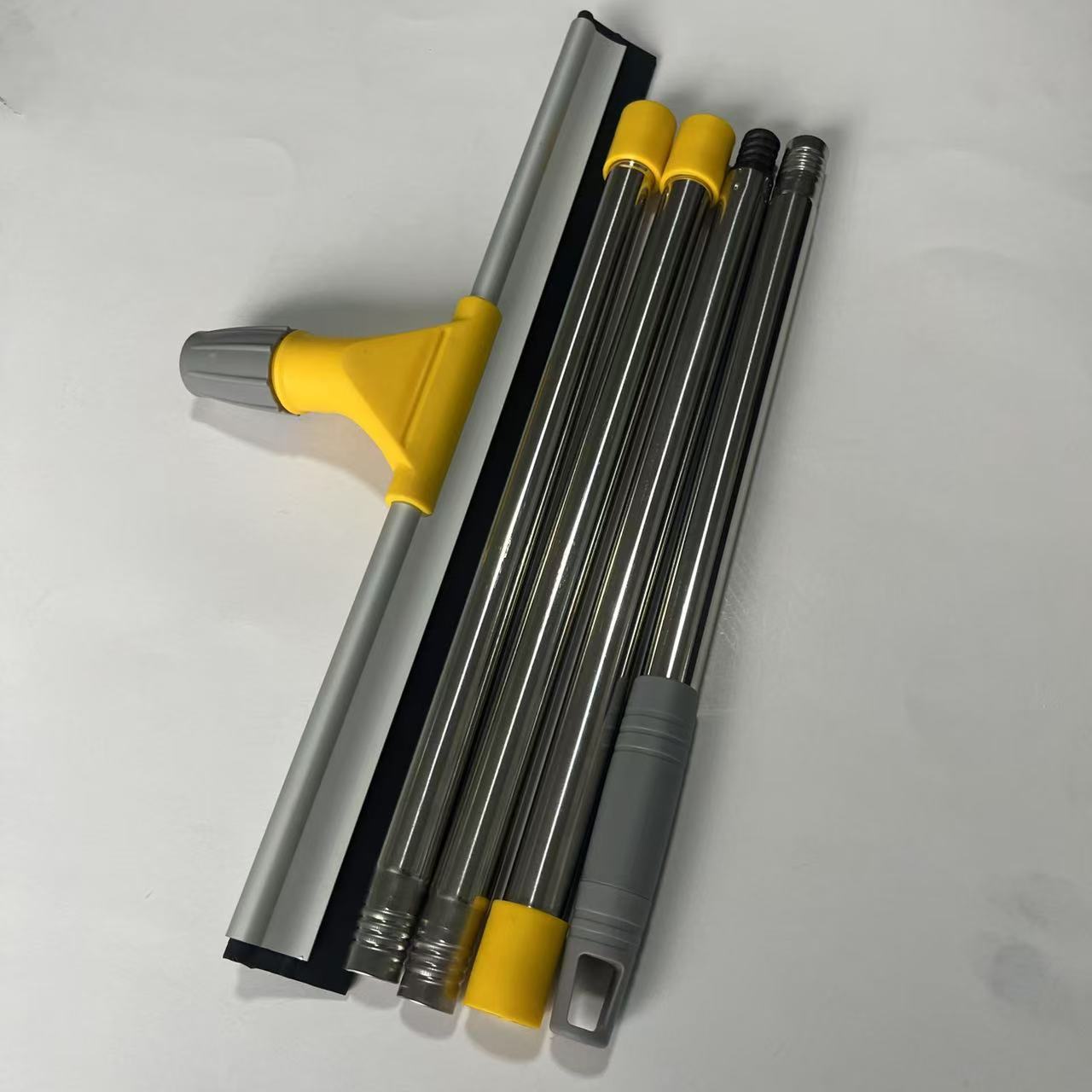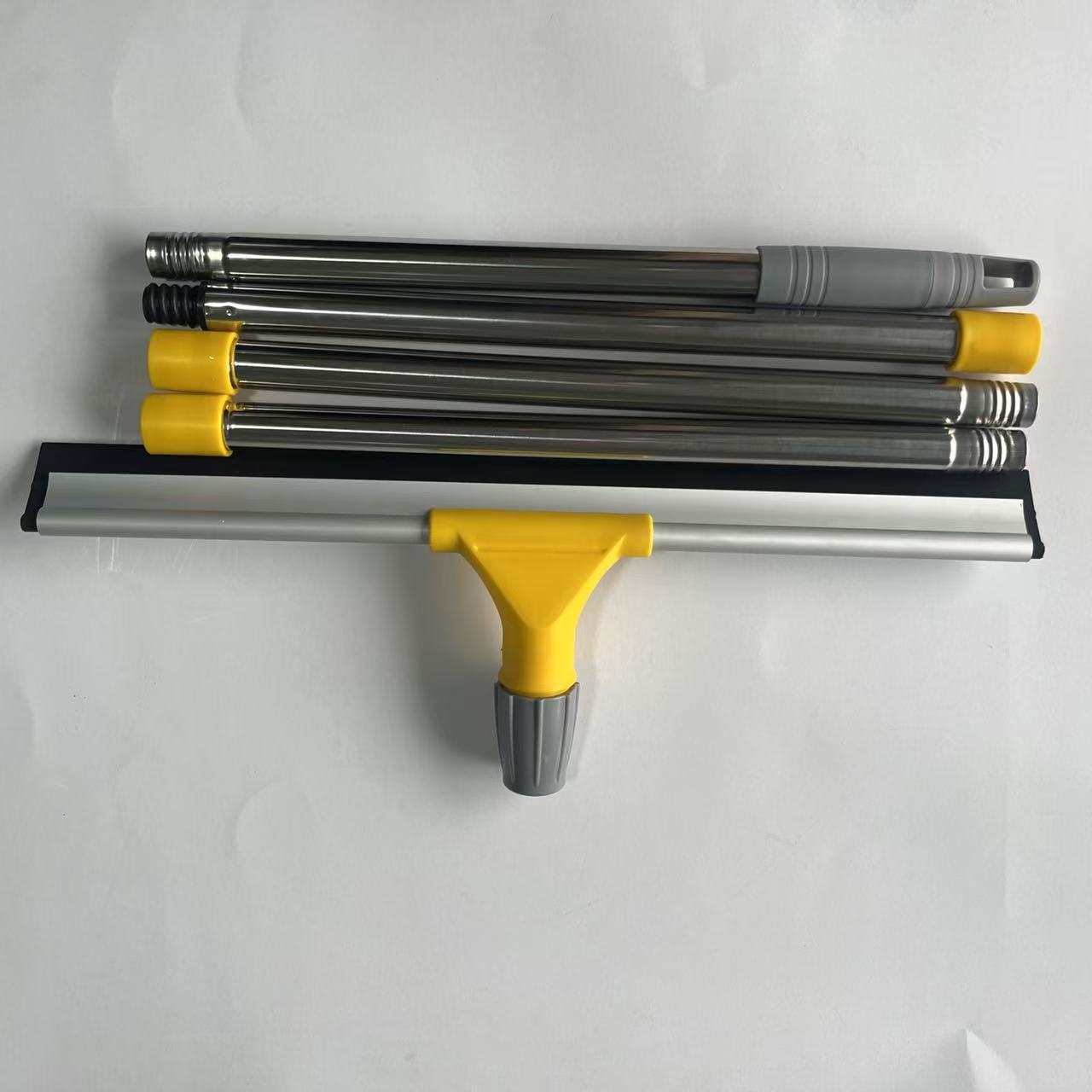 橡胶刮条 柔软有韧性耐磨,刮水铝条加厚处理,提高了使用强度;杆子为不锈钢材质,表面亮度高,不易生锈,管口采用翻口处理不会划伤手部,分支杆处理,方便包装,节约包装成本;刮条尺寸可以根据使用要求长度可以定制,清理污渍,水渍 ,灰尘、毛发。使用场合广泛。