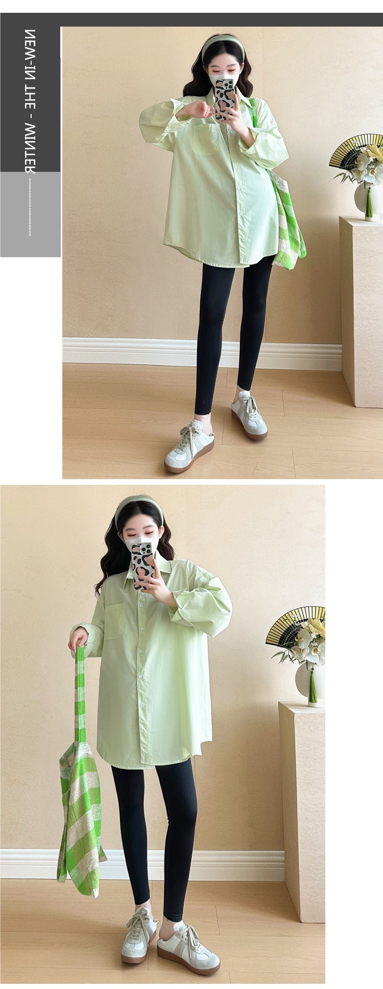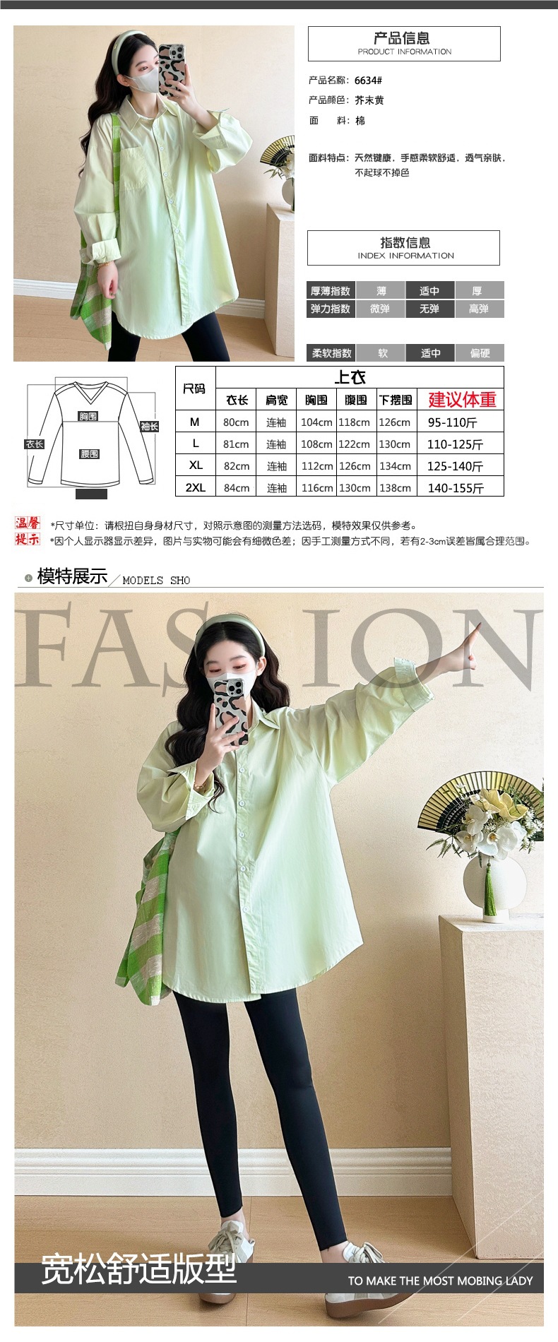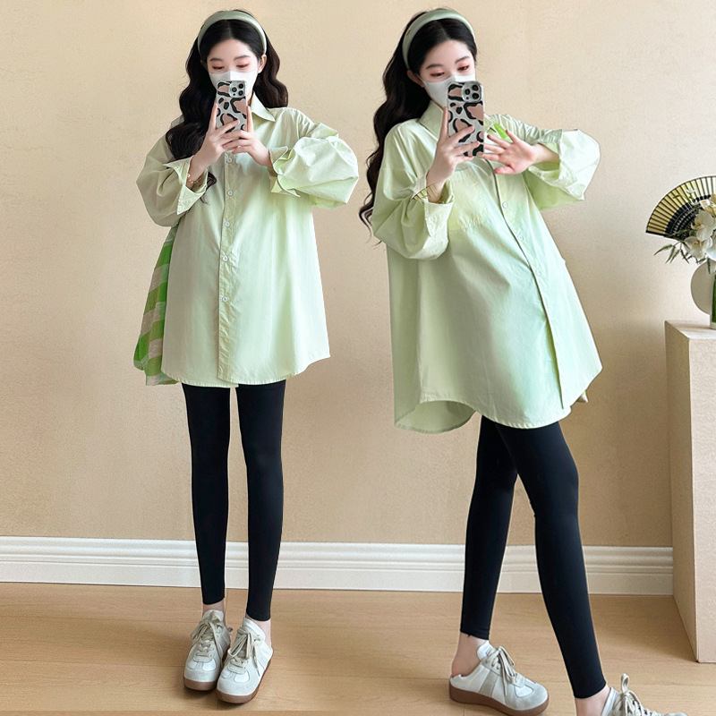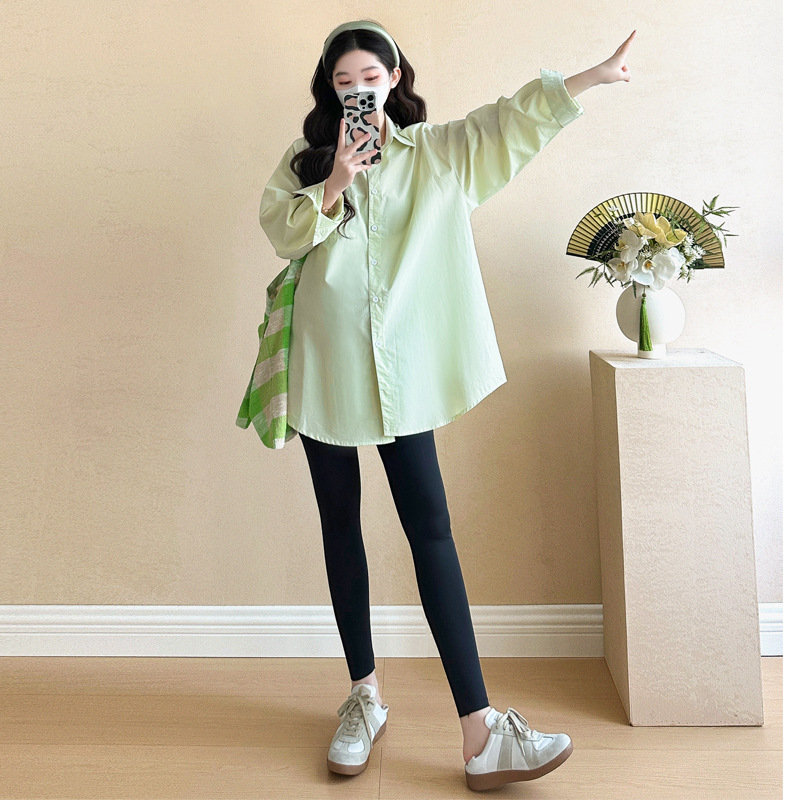 Одежда для беременных 2025 Новая корейская версия хлопчатобумажная средняя длинная повседневная рубашка модная мама