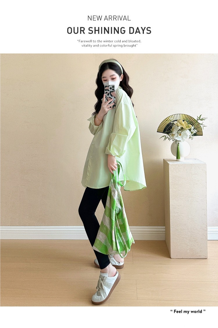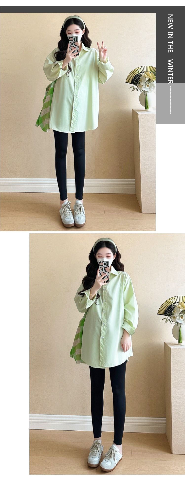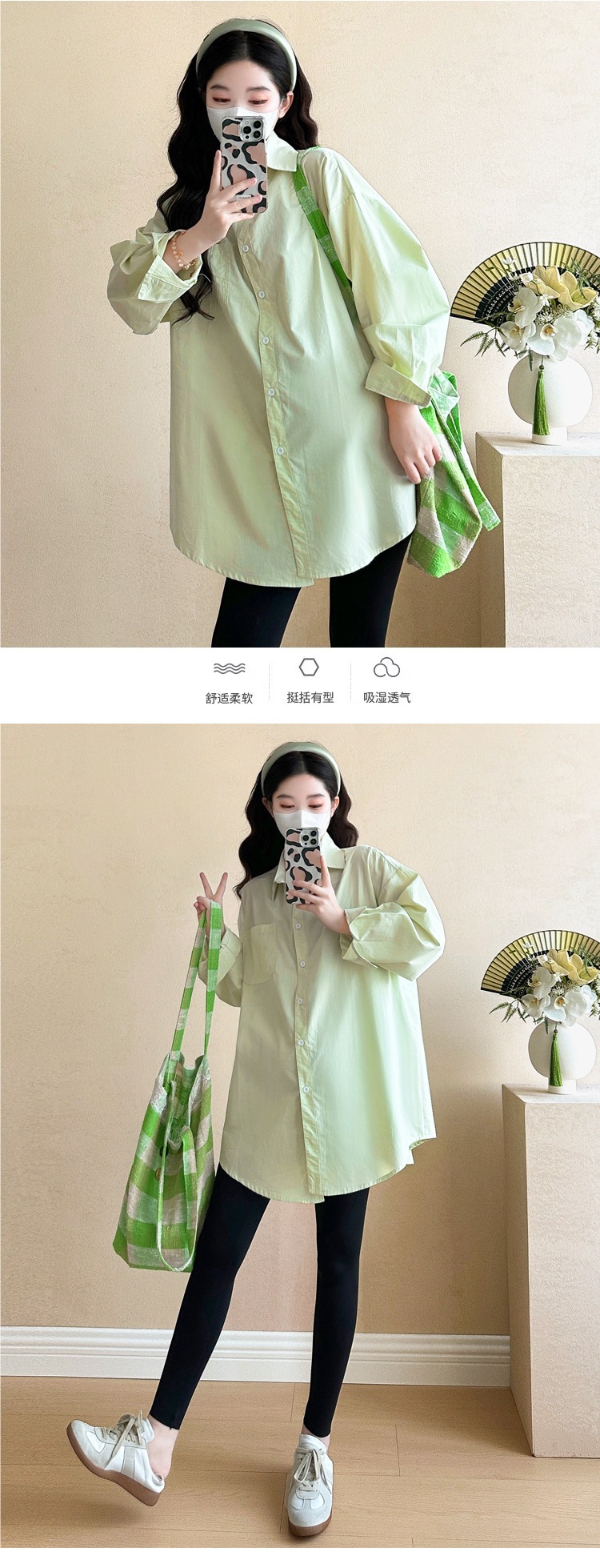Одежда для беременных 2025 Новая корейская версия хлопчатобумажная средняя длинная повседневная рубашка модная мама