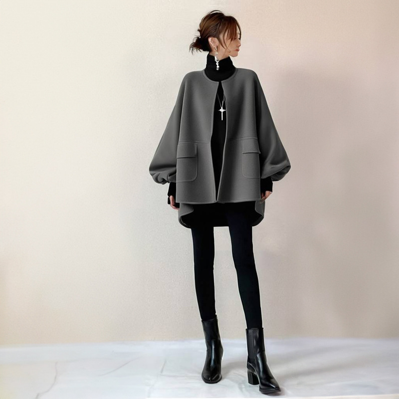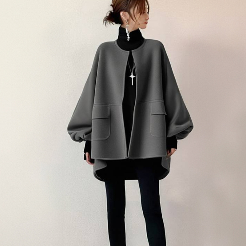 Осеннее и зимнее пальто Nizi 2025 Японский круглый галстук карманные рукава фонарь свободные пальто Nizi