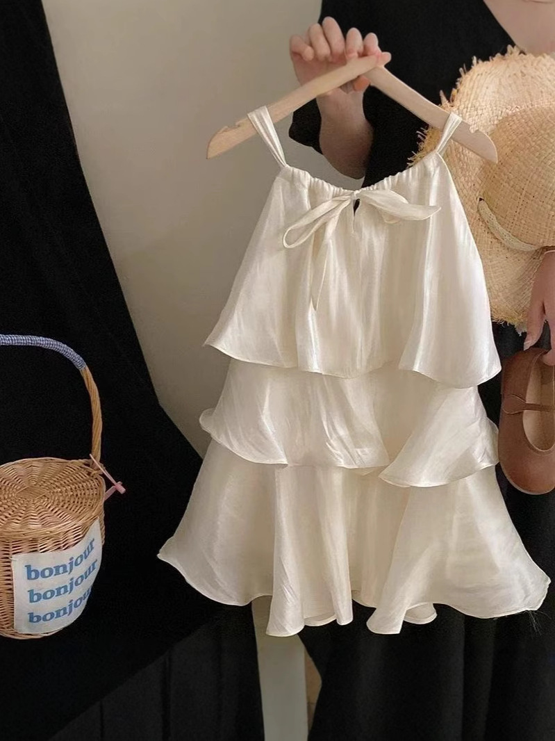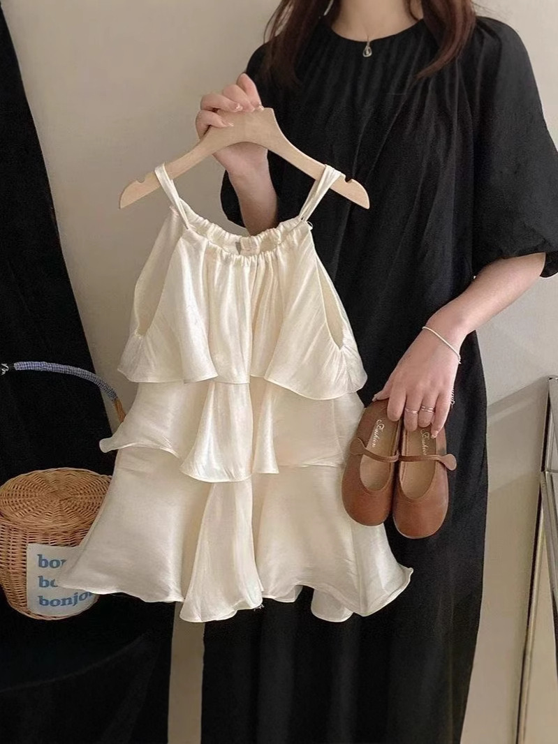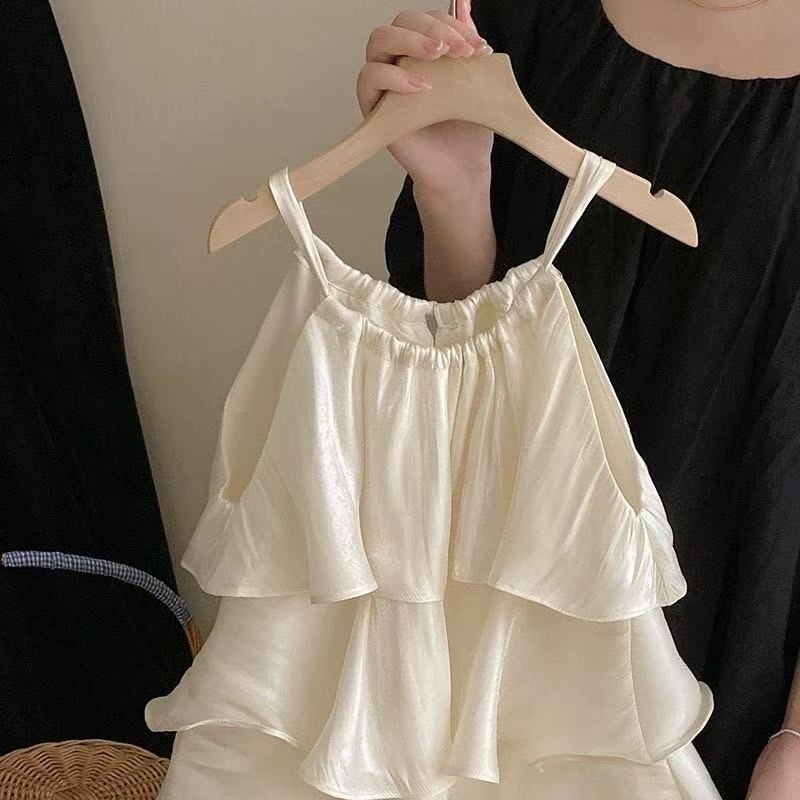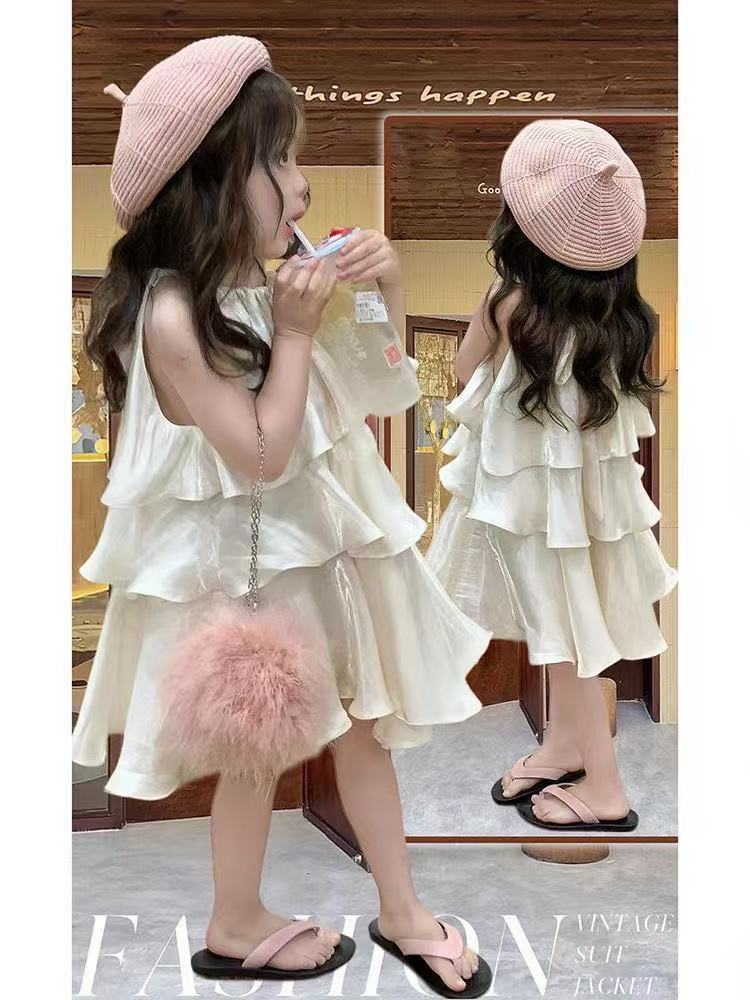 2025 летнее платье без рукавов с рюшами для девочек с задорной юбкой детское платье для торта темперамент фея юбка