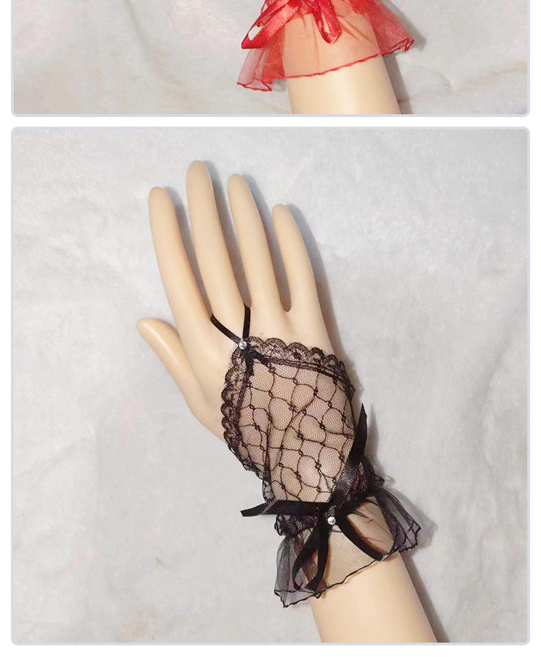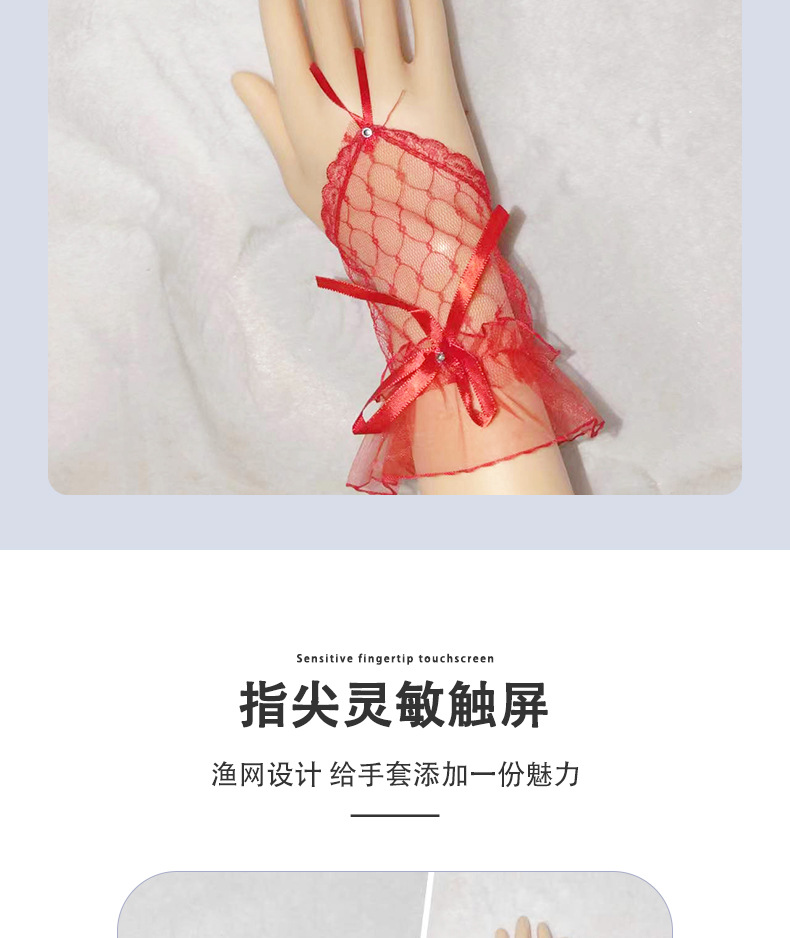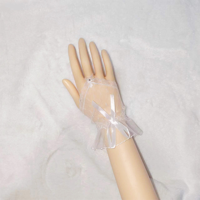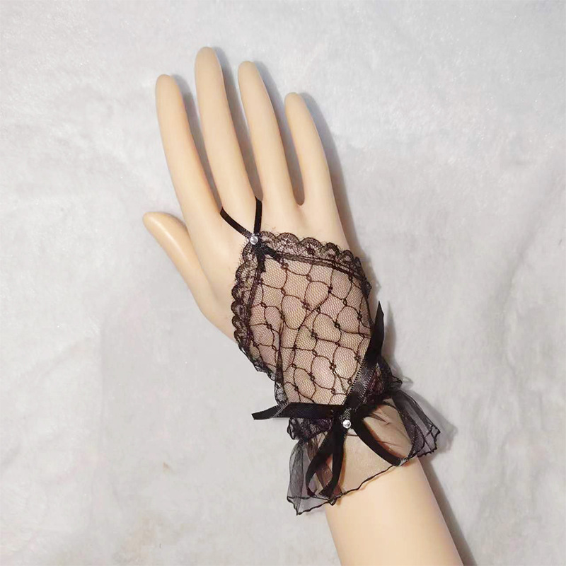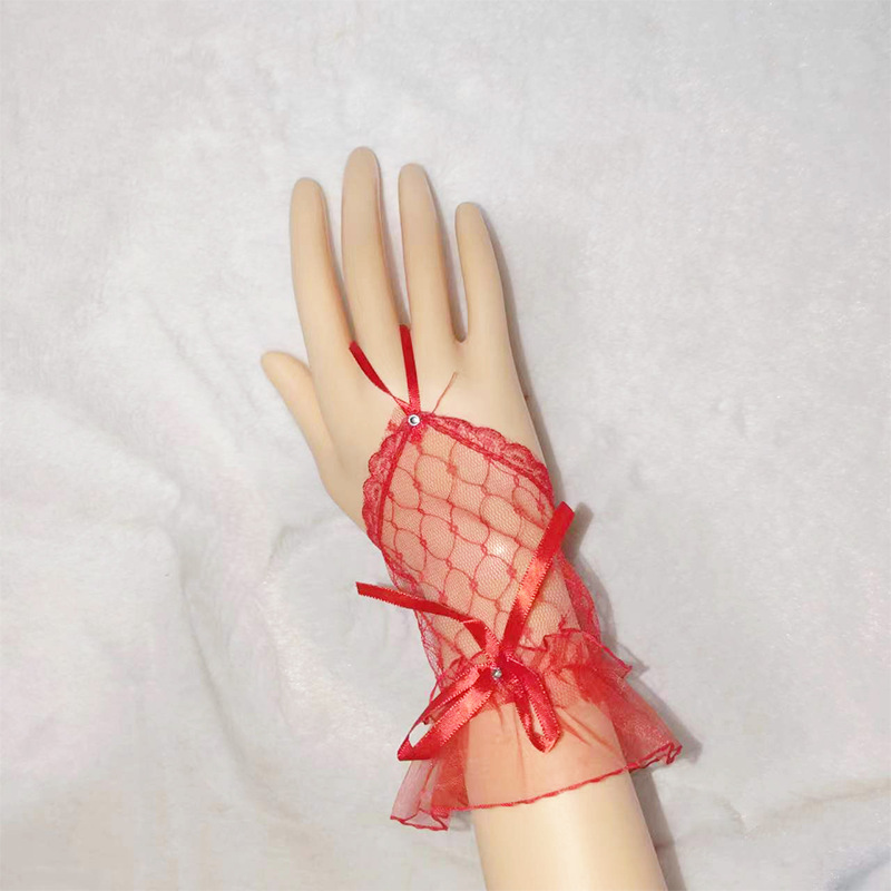 Короткий крючок кружевные перчатки из тюля сладкая сетчатая пряжа летом черные красные белые перчатки Лолита свадебное платье