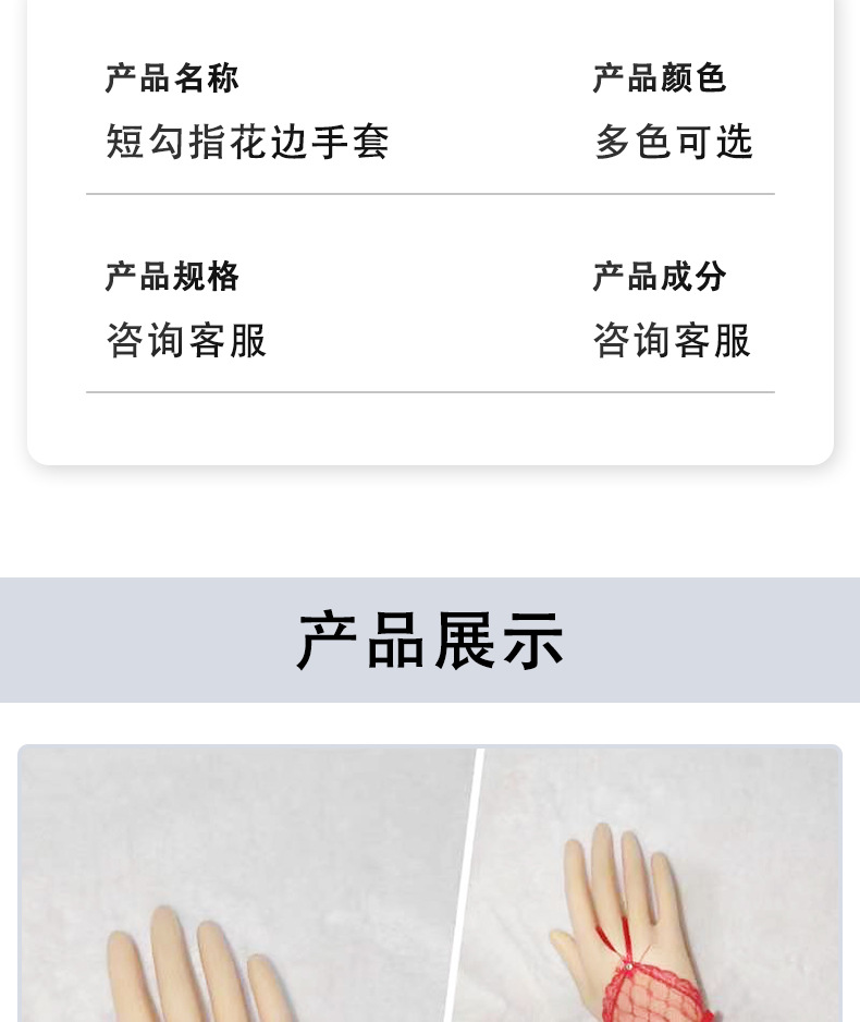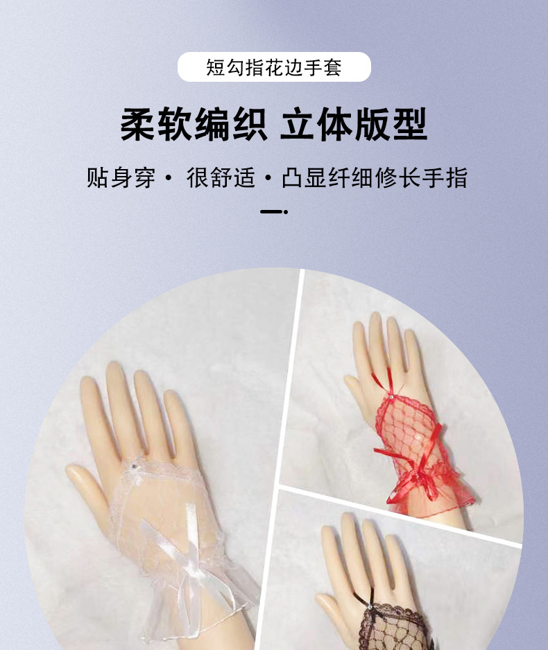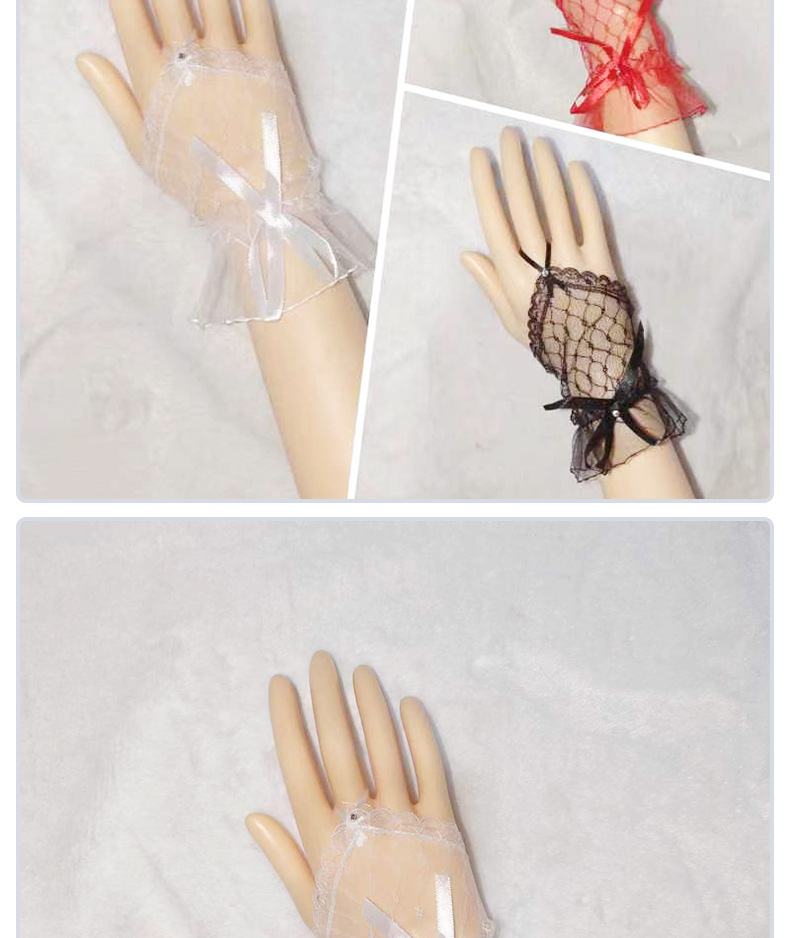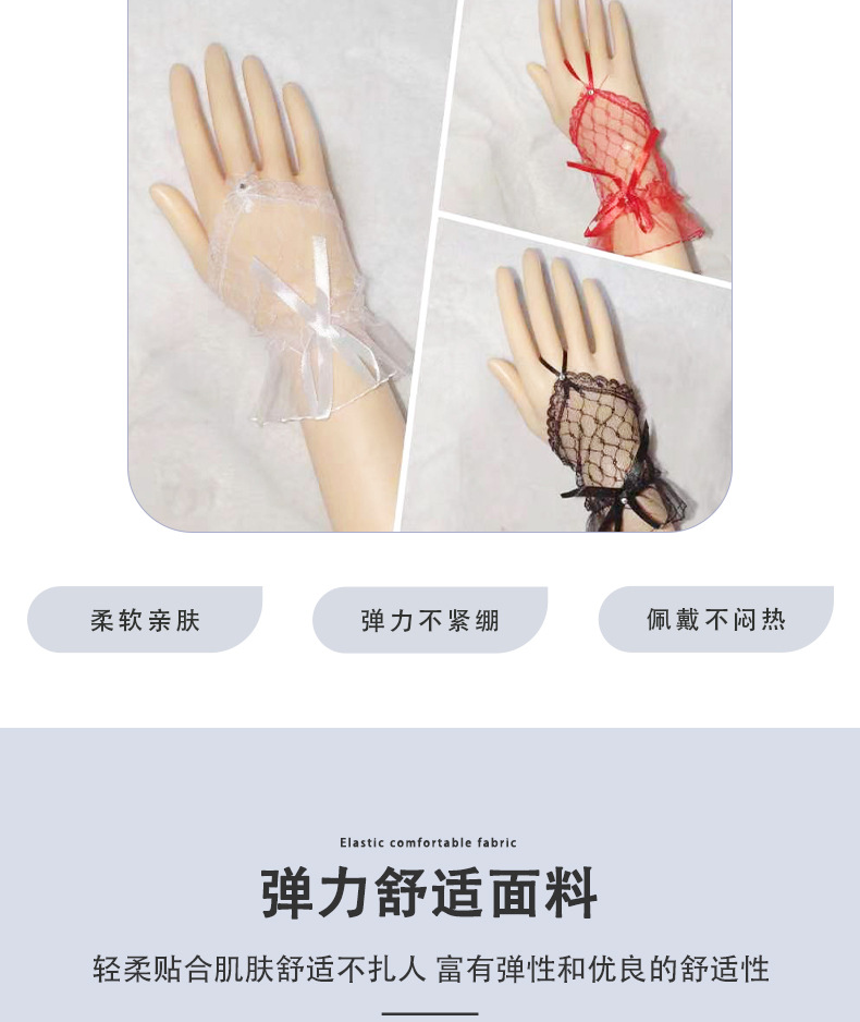 Короткий крючок кружевные перчатки из тюля сладкая сетчатая пряжа летом черные красные белые перчатки Лолита свадебное платье