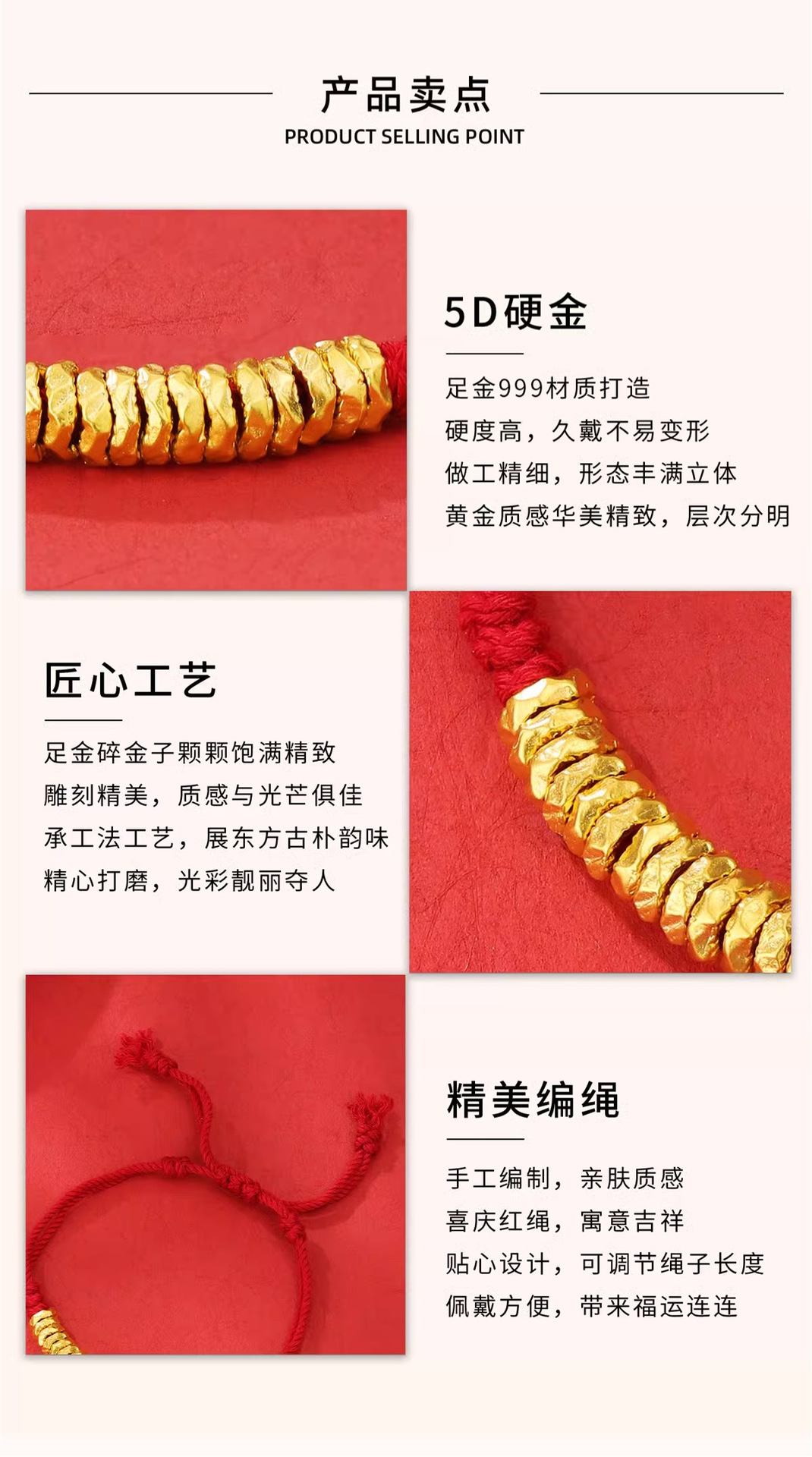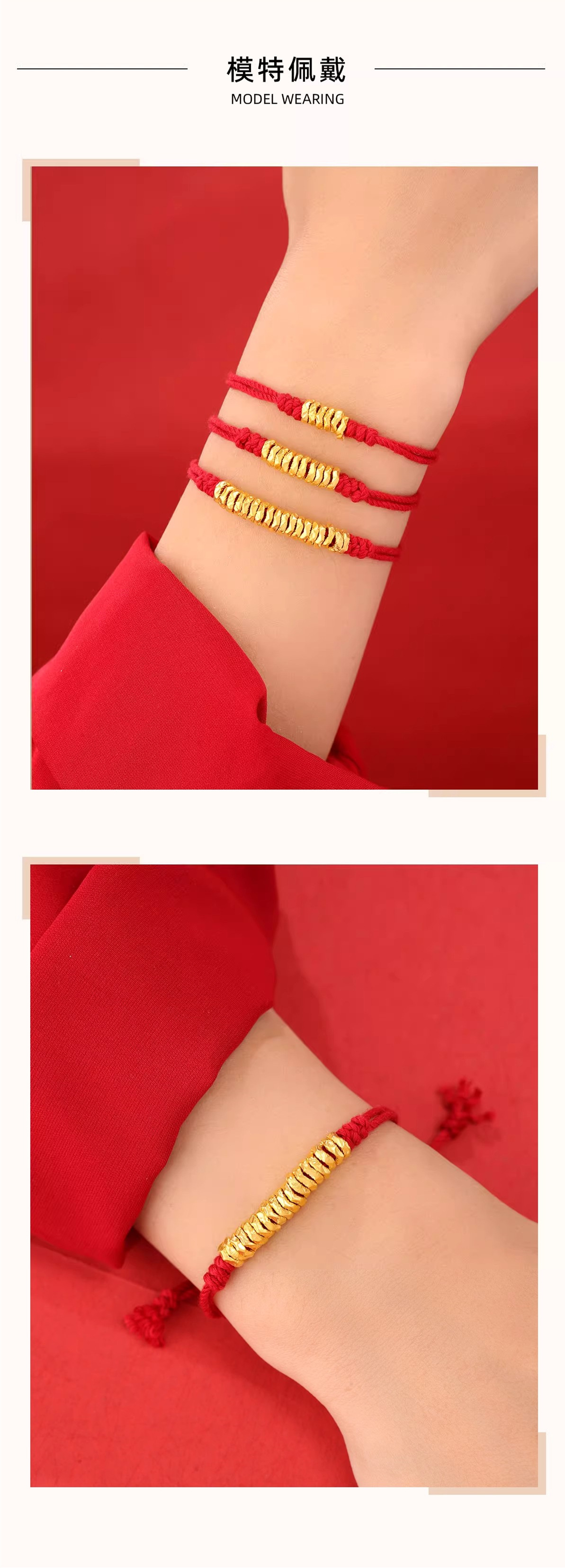 Браслет из чистого золота 999 пробы, сломанное золото, позолоченный браслет для женщин, год зодиака, красная веревка, денежная нить, бусины-разделители из чистого золота, 3D твердое золото