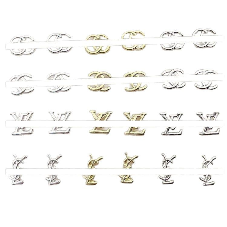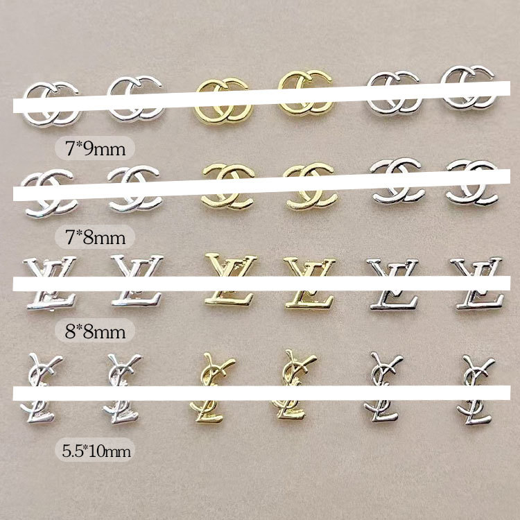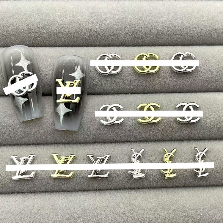 Новые аксессуары для нейл-арта с логотипами известных брендов, высококачественные позолоченные роскошные украшения для ногтей из сплава, неправильной формы, с вырезами.