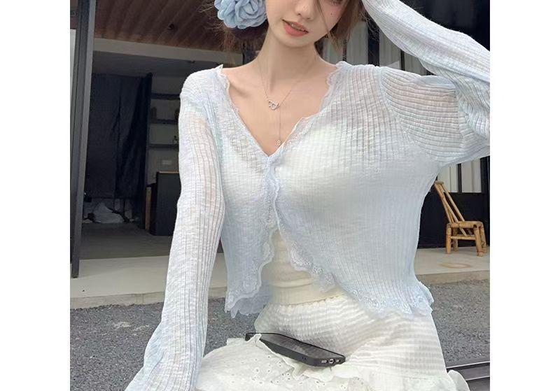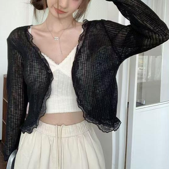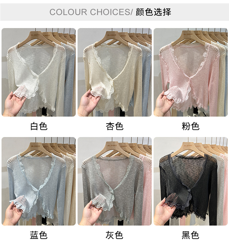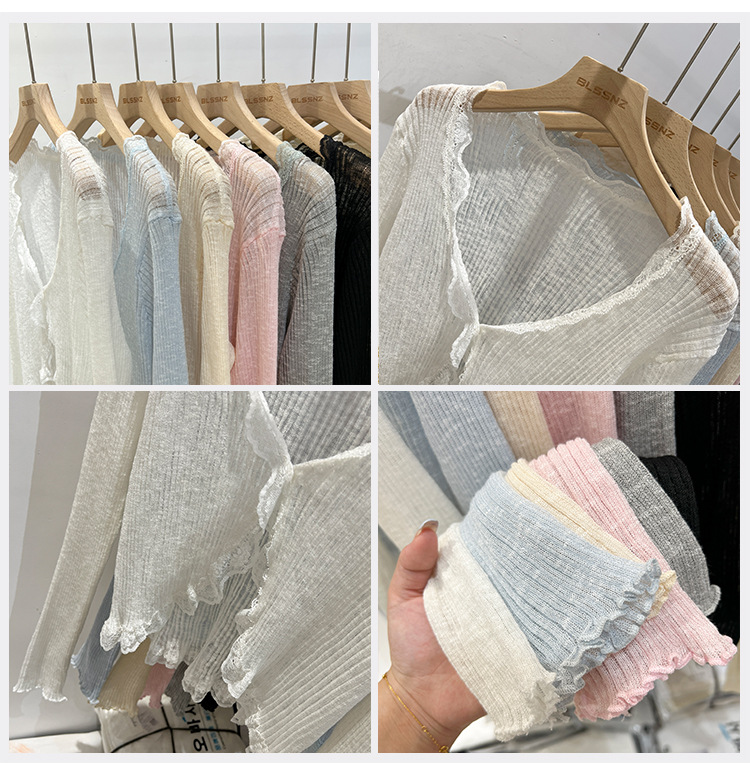 Свитый солнцезащитный кардиган с деревянным вырезом из ушей