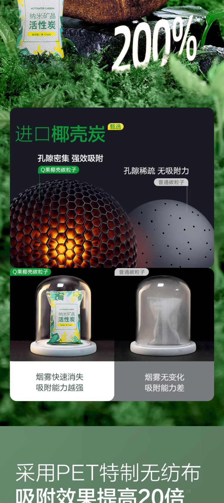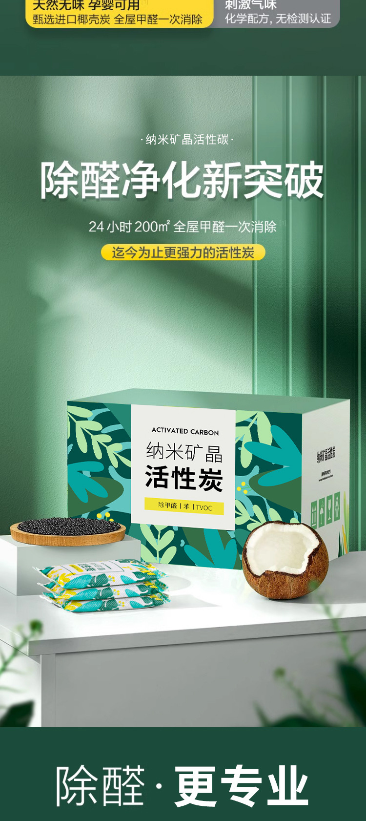 Активированный уголь 2000 г/коробка (коробка зеленого цвета) + 2 тестовых коробки; Активированный уголь 2000 г/коробка (коробка фиолетового цвета с фиолетовым камнем) + 2 тестовых коробки; Упаковка 50 г – 1 пакетик активированного угля [зеленый пакет оптом]; Упаковка 100 г — 1 пакетик с напечатанным активированным углем [оптом]; Пакет с активированным углем 500 г (синяя и зеленая упаковка случайная); Тестовая коробка для формальдегида