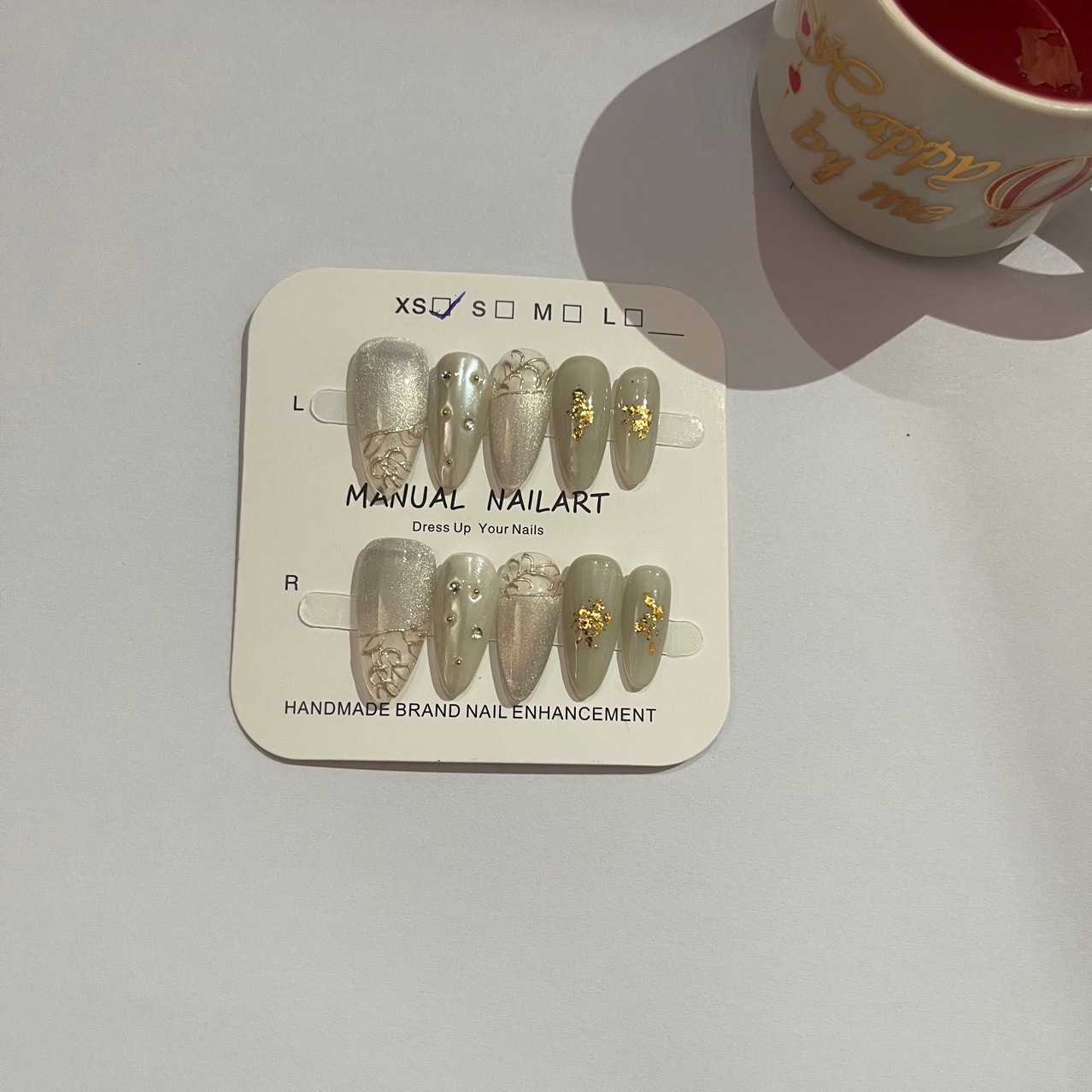Миндальное кошачье око, ручная роспись, текстура, волшебная зеркальная пудра