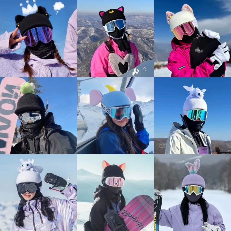 Чехол для лыжного шлема с милыми мультяшными кошачьими ушками, детский же стиль, одинарный и двойной аккумуляторный чехол для шлема, универсальный для мужчин и женщин
