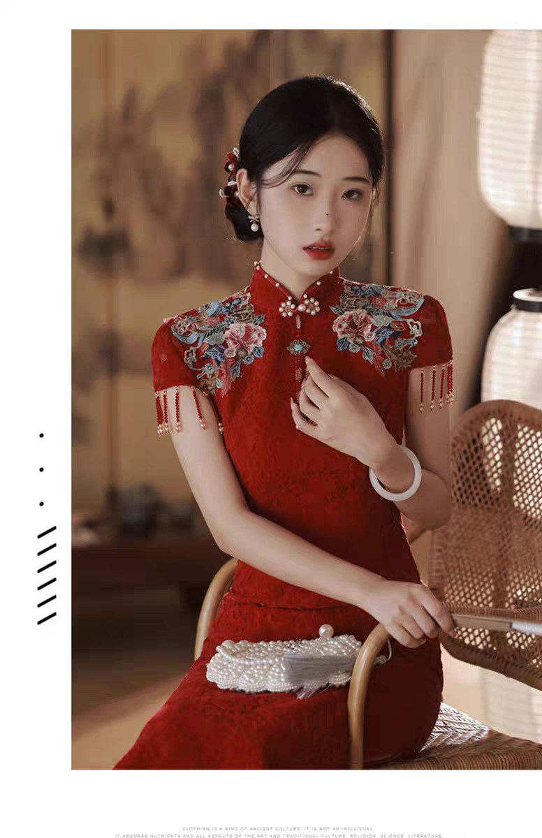 Cheongsam тост костюм невесты винно-красный маленький помолвка платье платье новый китайский стиль