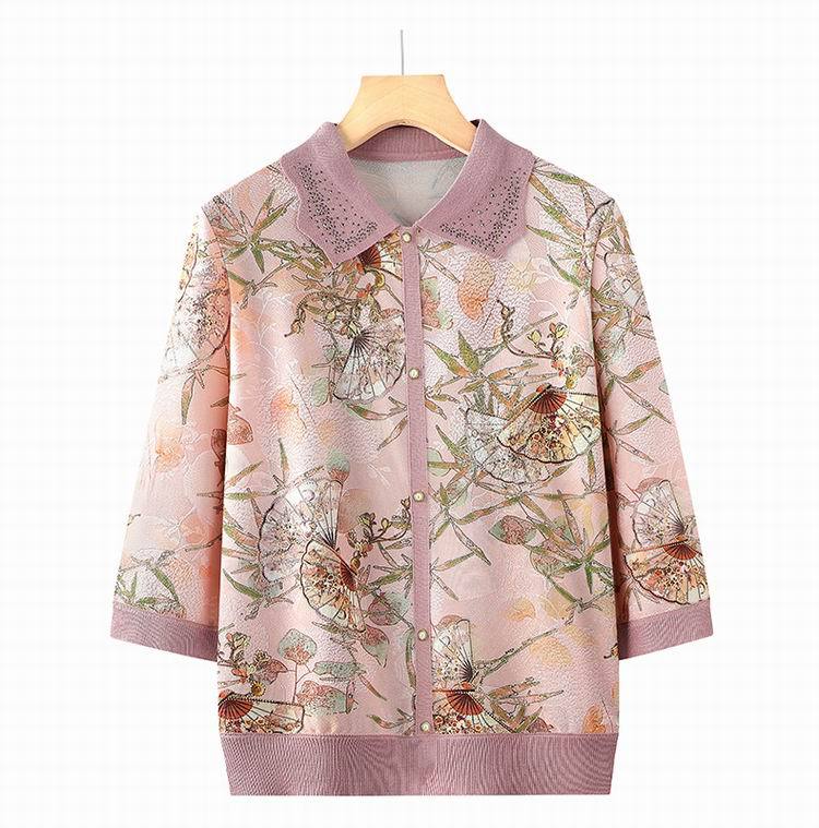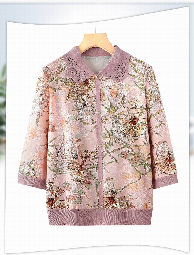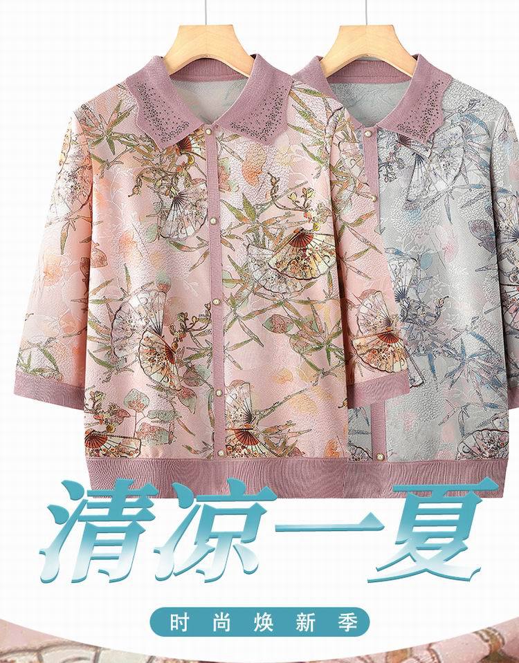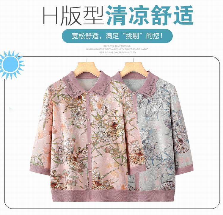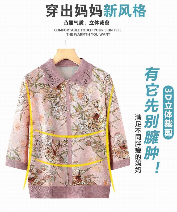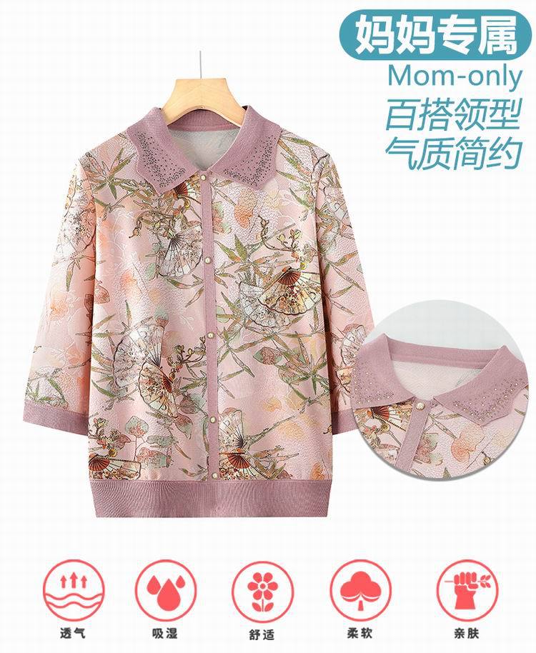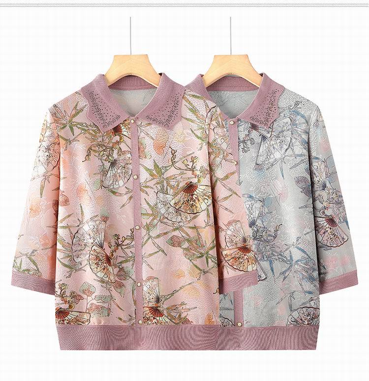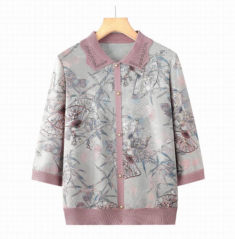 Мама весенняя новая китайская тонкая вязаная маленькая рубашка среднего и пожилого возраста весна и осень национальный ветер ледяной шелк футболка с длинными рукавами