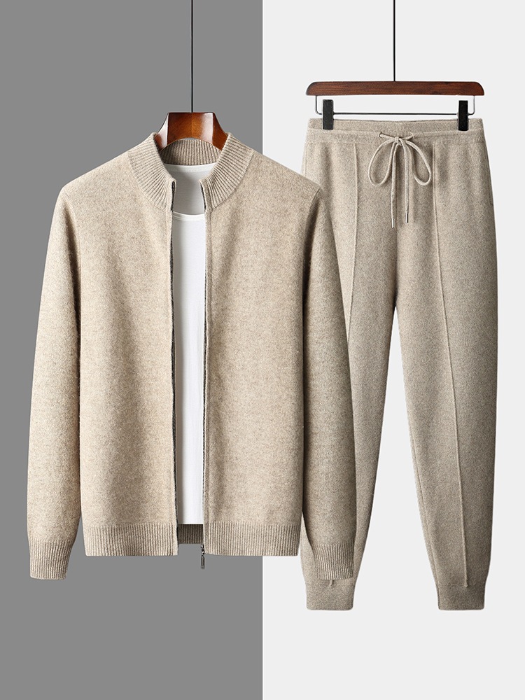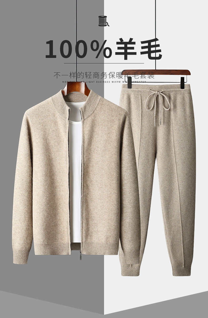 2025 весна и осень новый шерстяной кардиган мужской застежка-молния вязаный свитер куртка теплый свободный кашемировые брюки мужской
