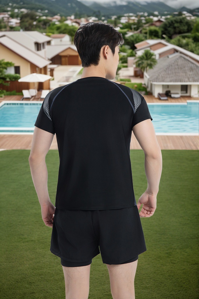 2025 новый мужской купальник плавательный топ с короткими рукавами костюм солнцезащитный крем буквенные простые свободные двухслойные брюки