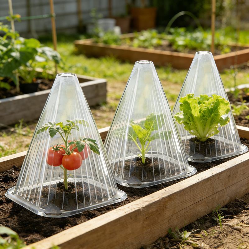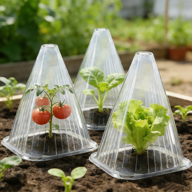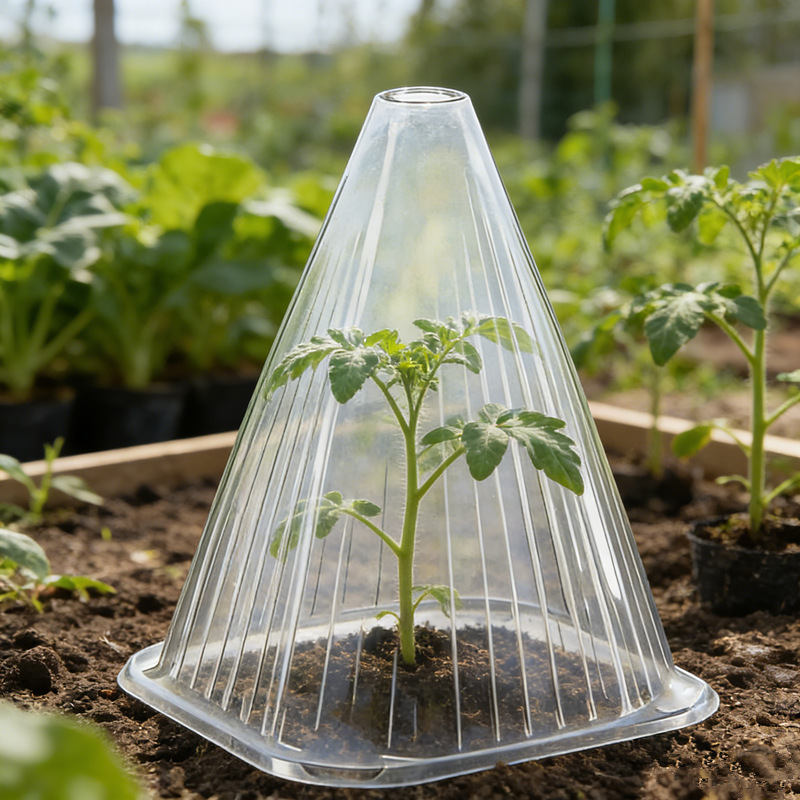 Защитный конусообразный чехол из ПЭТ для рассады, ветрозащитный, водонепроницаемый и утепляющий, прозрачный, с высокой степенью прозрачности и теплоизоляцией.