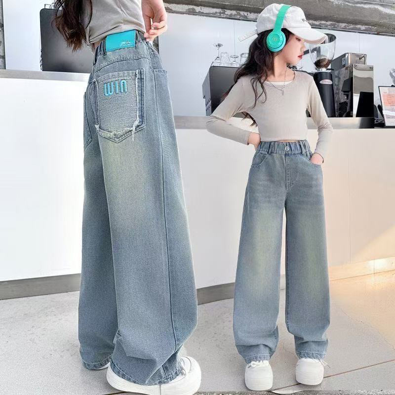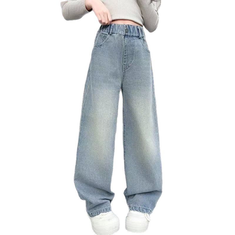 Детские широкие брюки для девочек на весну и осень, новая модель 2025 года, свободные длинные брюки, модные брендовые брюки.