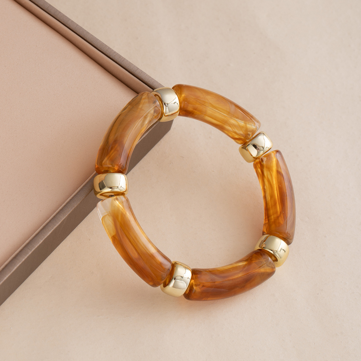 Европейская и американская мода персонализированный новый акриловый браслет с изогнутыми бамбуковыми трубками многоцветный ретро мраморный браслет