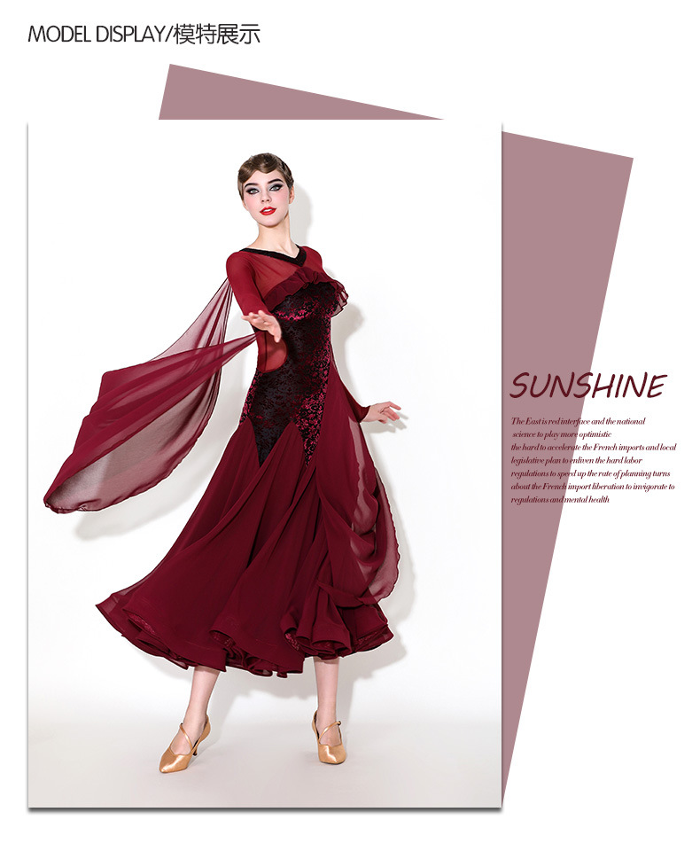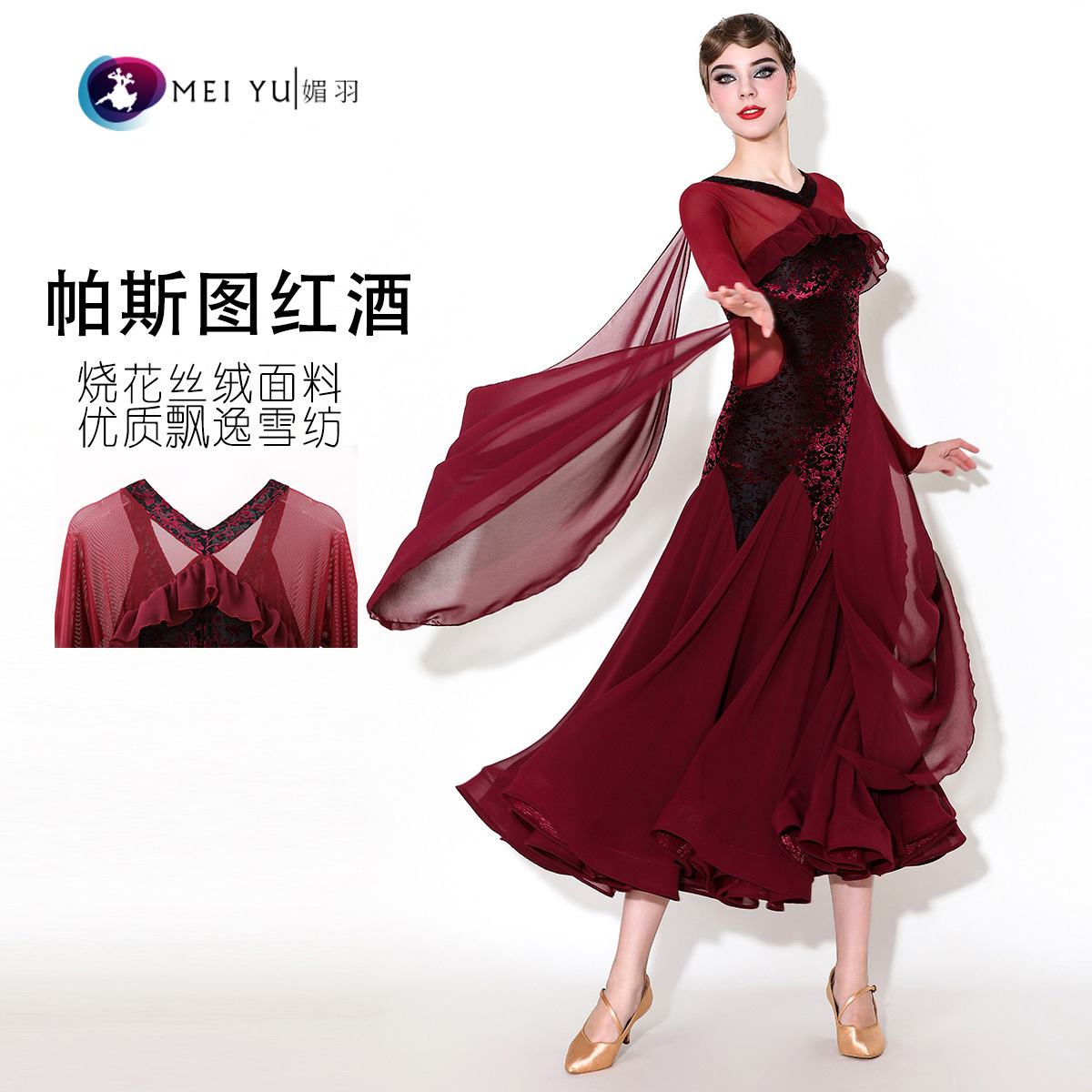 Пасту красное вино! Mei Yu новый потрясающий современный танцевальный платье MY916 национальный танцевальный костюм вальс платье
