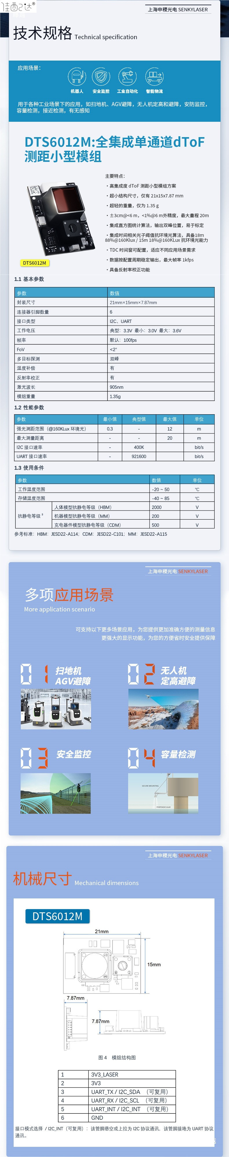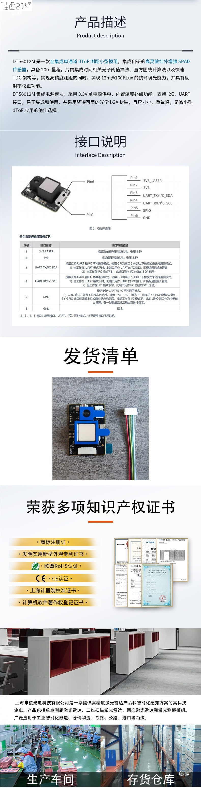20 м небольшой объем высокого интегрированного модуля лазерной дальности dToF Инфракрасный сантиметр точности промышленный модуль лидара