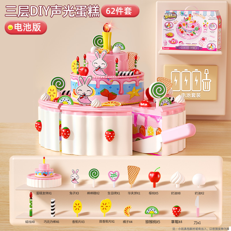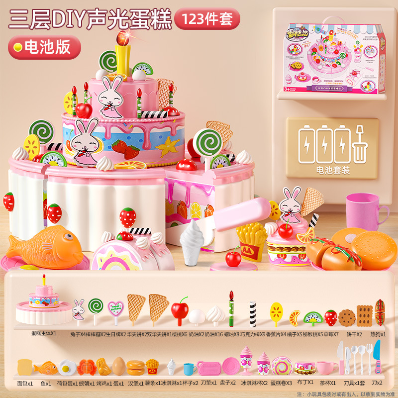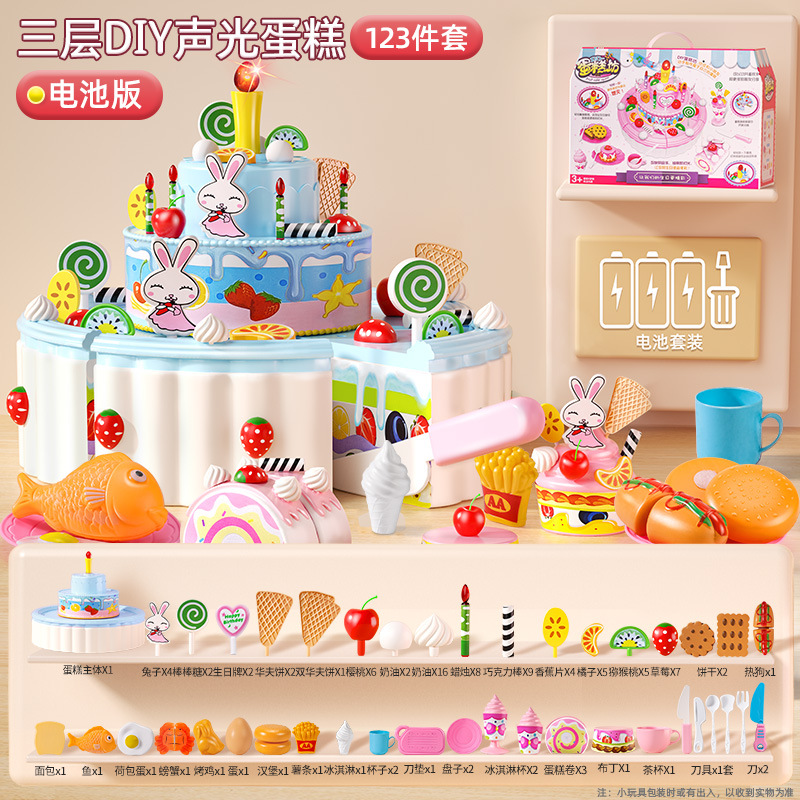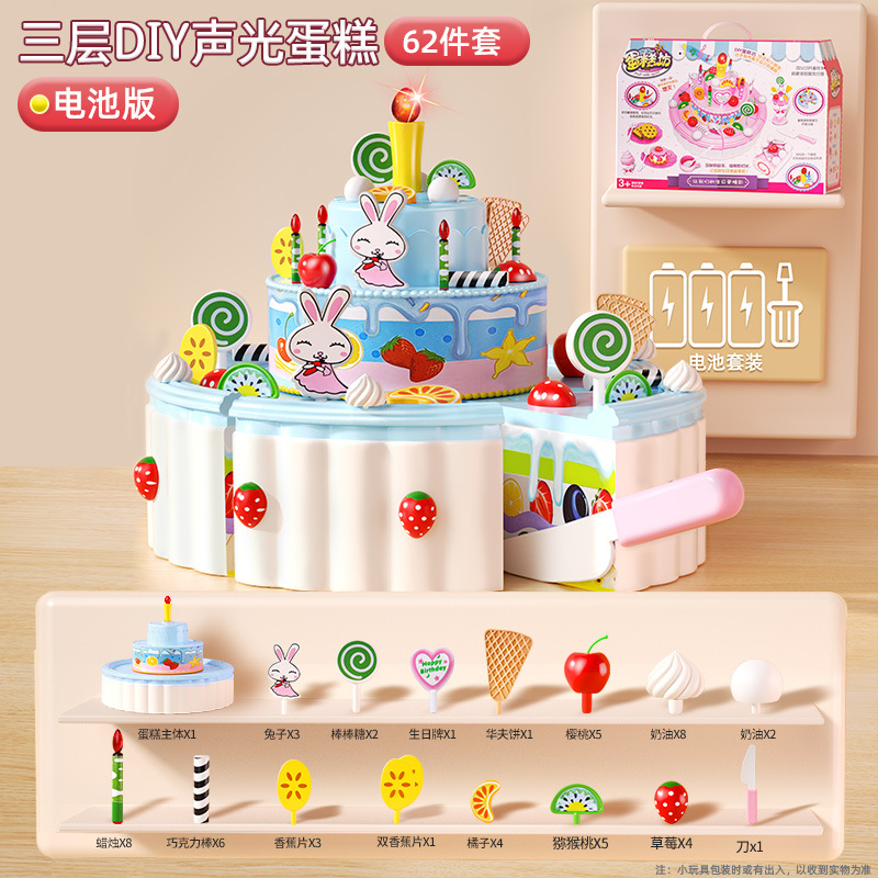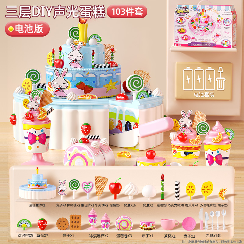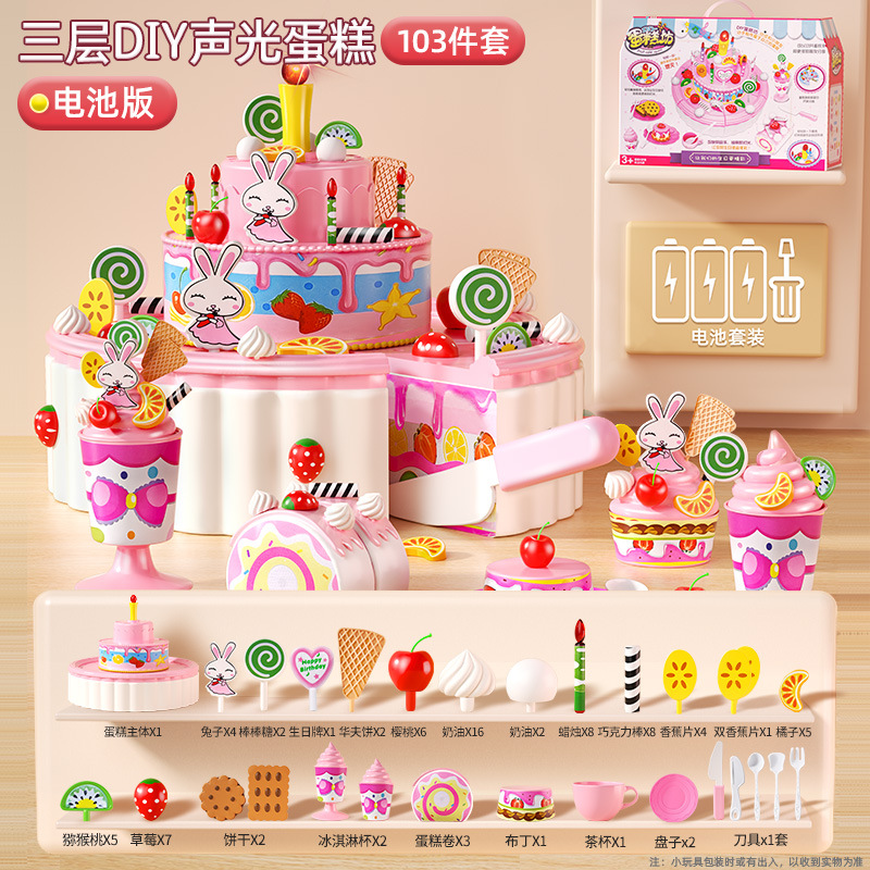 【功能】:DIY,切切乐,声光音乐和可吹灭蜡烛(103件套)