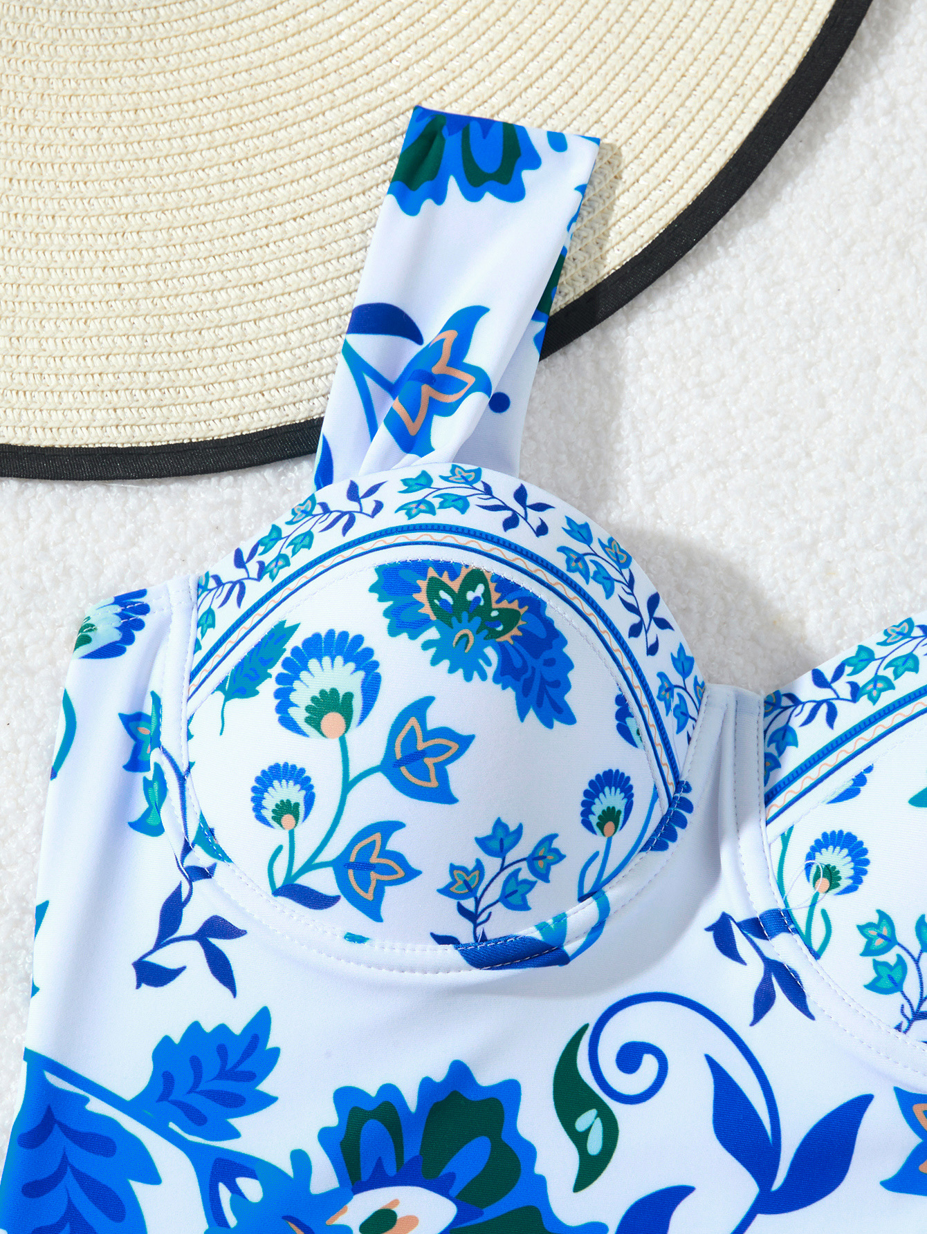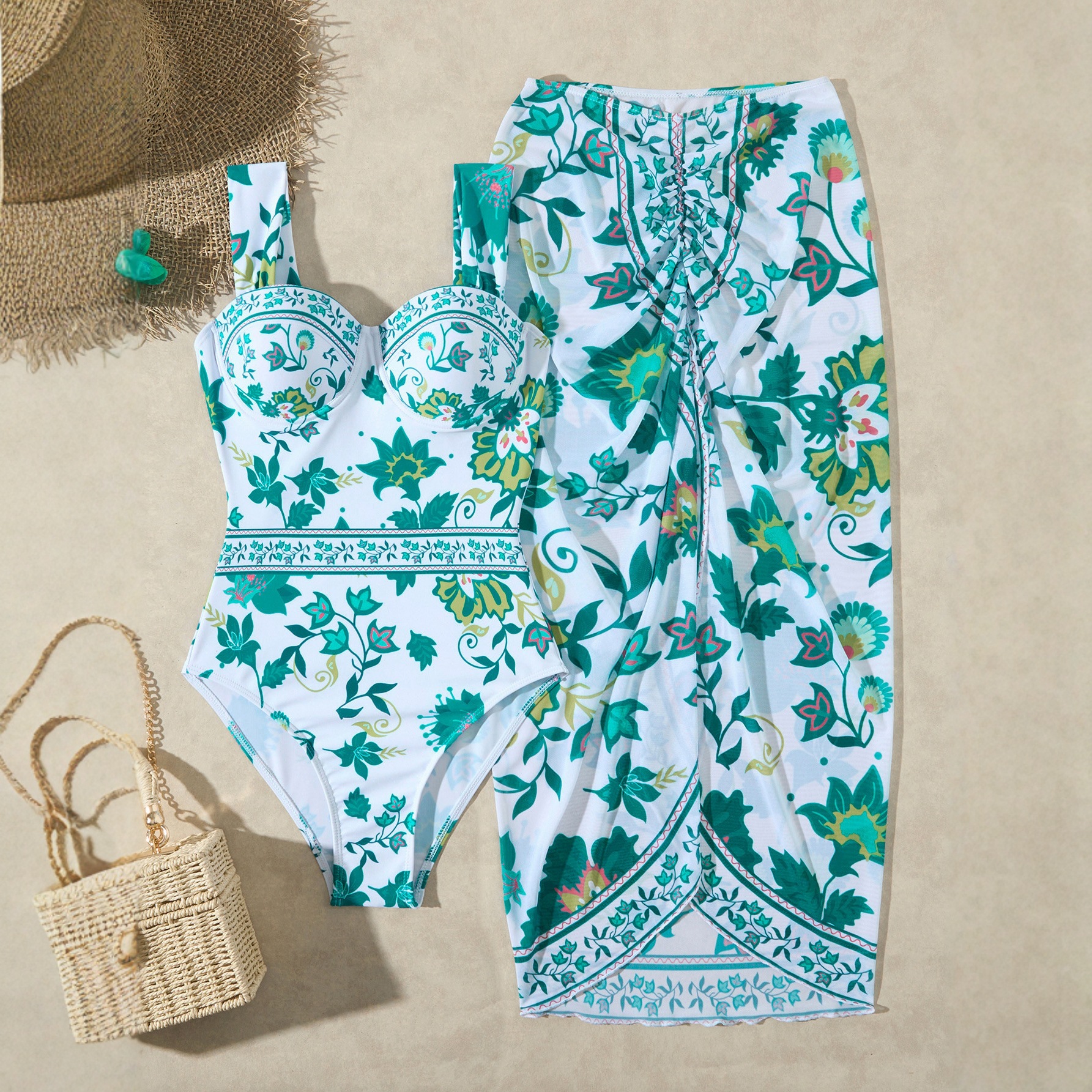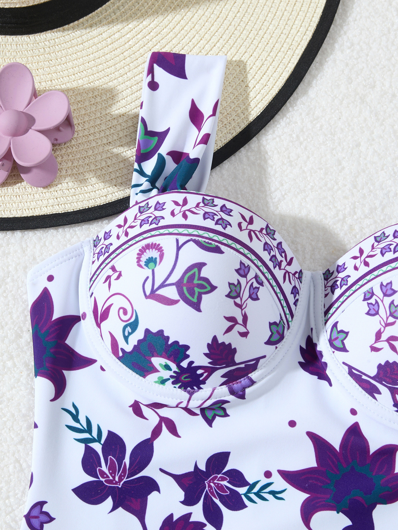 Женский цельный купальник-бикини с принтом, облегающий, с бретельками, для пляжа, модель 2025 года, европейский и американский стиль, для трансграничной торговли, на Amazon