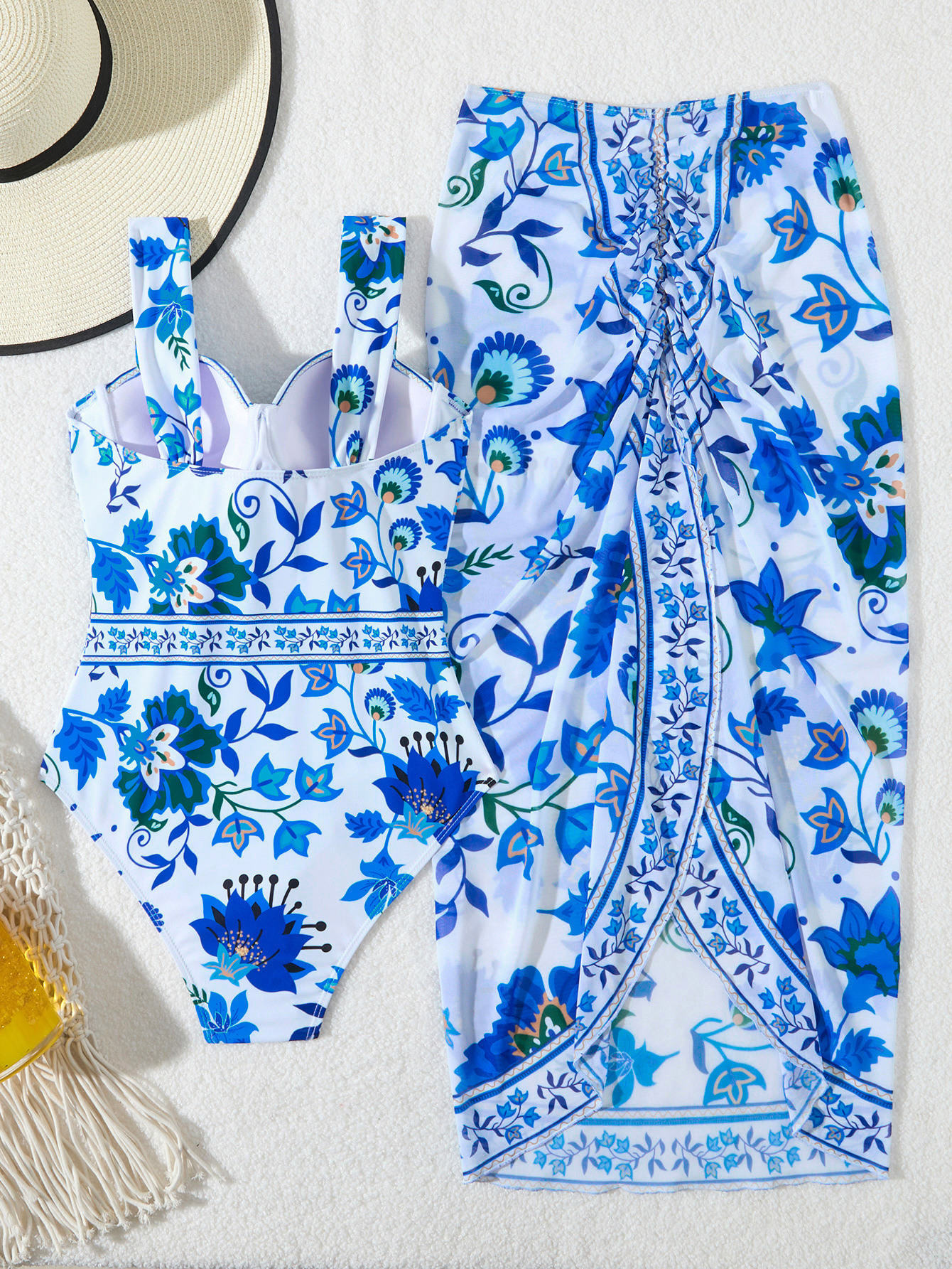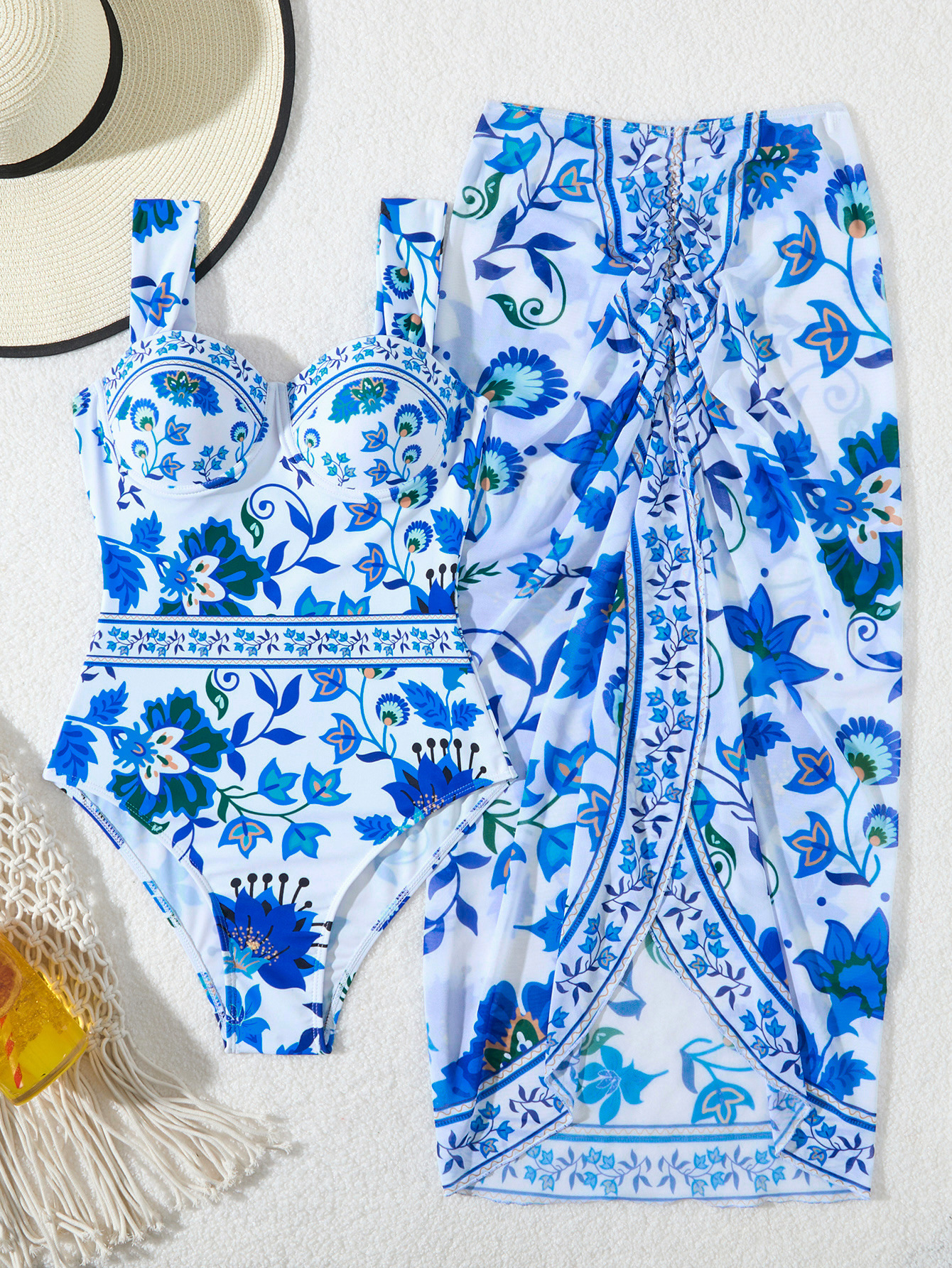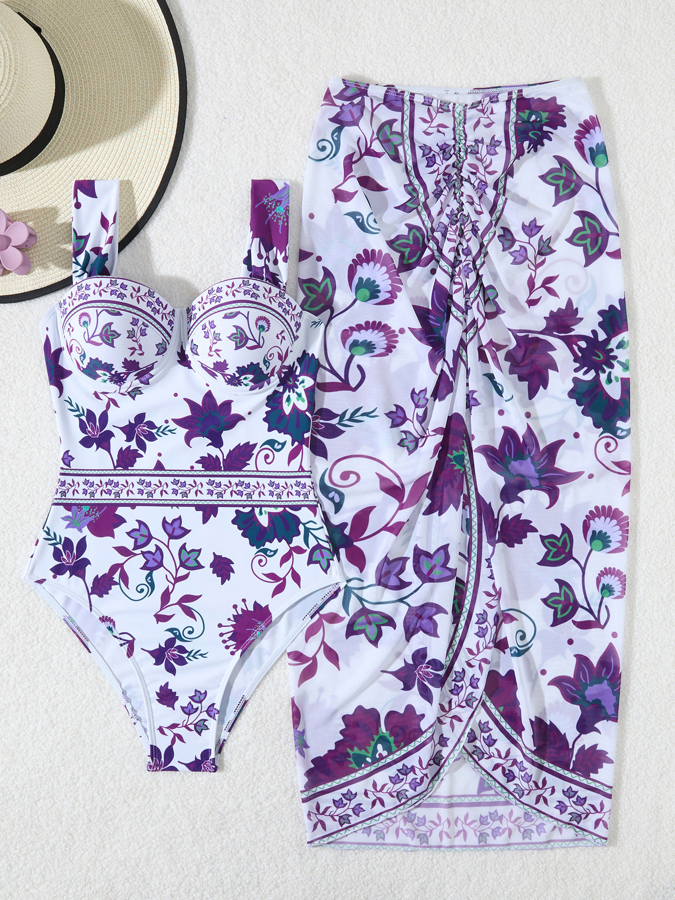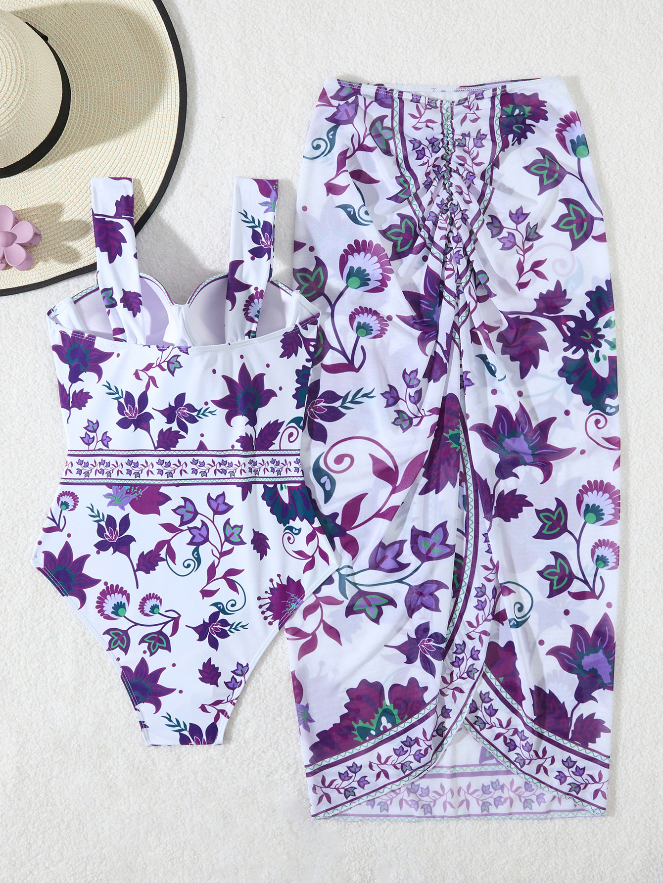 Женский цельный купальник-бикини с принтом, облегающий, с бретельками, для пляжа, модель 2025 года, европейский и американский стиль, для трансграничной торговли, на Amazon