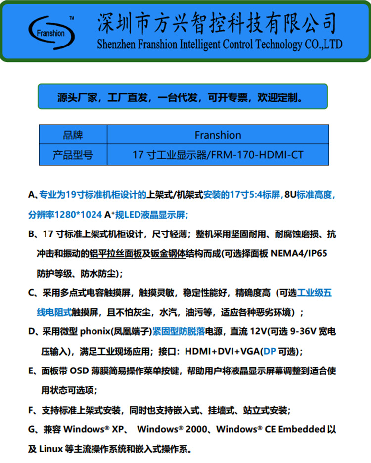 17inch Промышленный компьютер с сенсорным монитором, устанавливаемый в стойку, специализированный ЖК-монитор с сенсорным экраном