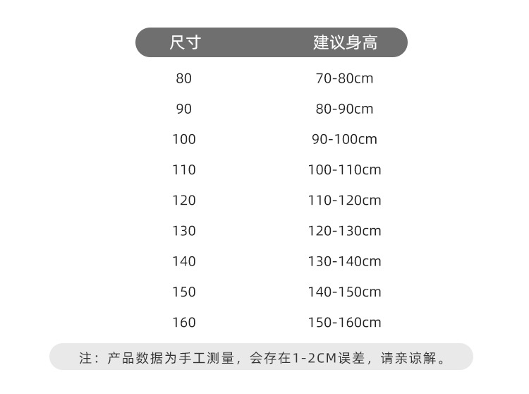 80cm; 90cm; 100cm; 110cm; 120cm; 130cm; 140cm; 150cm; 160cm