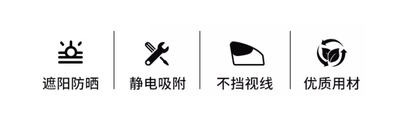 Солнцезащитный козырек из электростатической пленки - 1 шт. для вождения; Солнцезащитный козырек из электростатической пленки - 1 шт. для пассажира; Солнцезащитный козырек из электростатической пленки – 1 шт. в заднем ряду; Электростатическая пленка для солнцезащитного козырька и переднего окна; Электростатическая пленка солнцезащитный козырек-заднее стекло; 4 шт. солнцезащитных козырьков из электростатической пленки на весь автомобиль