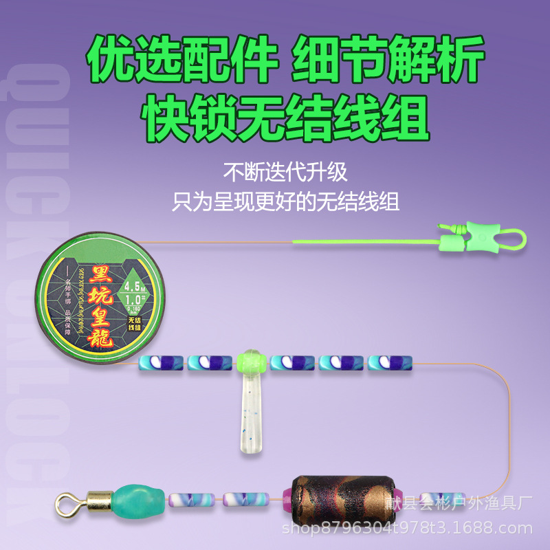 Черный ямный бесузловый набор готовой основной линии набор комплекта, связанный с подлинной высококачественной основной линией, полный набор рыболовных лесок