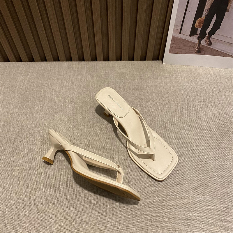 Минималистские шлепанцы женские летние 2025 новые квадратные сандалии на каблуках