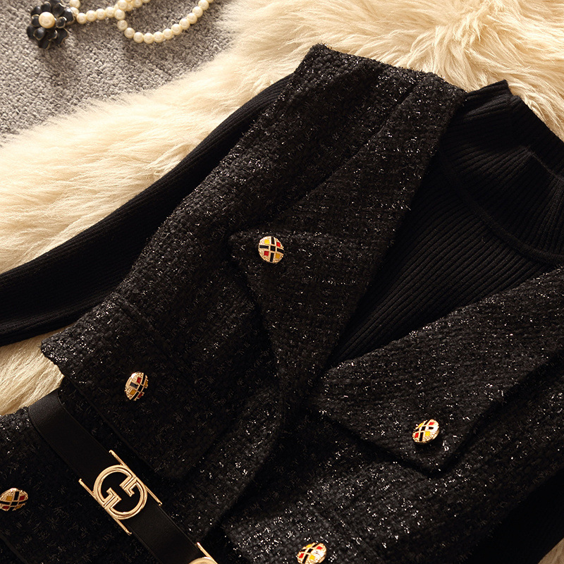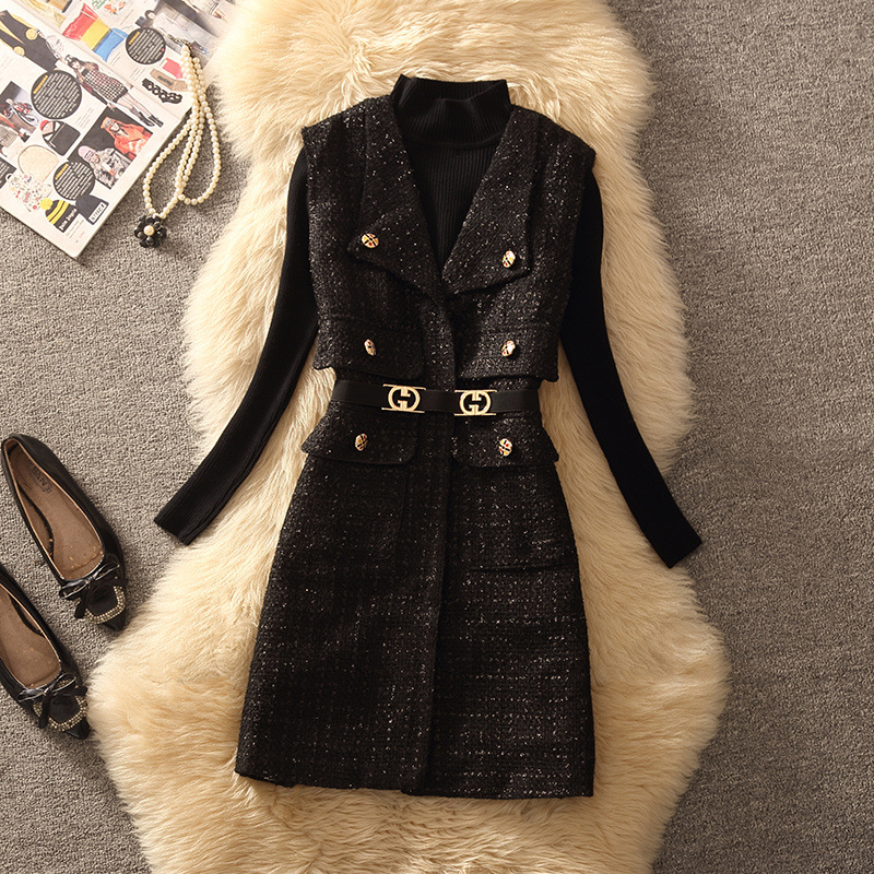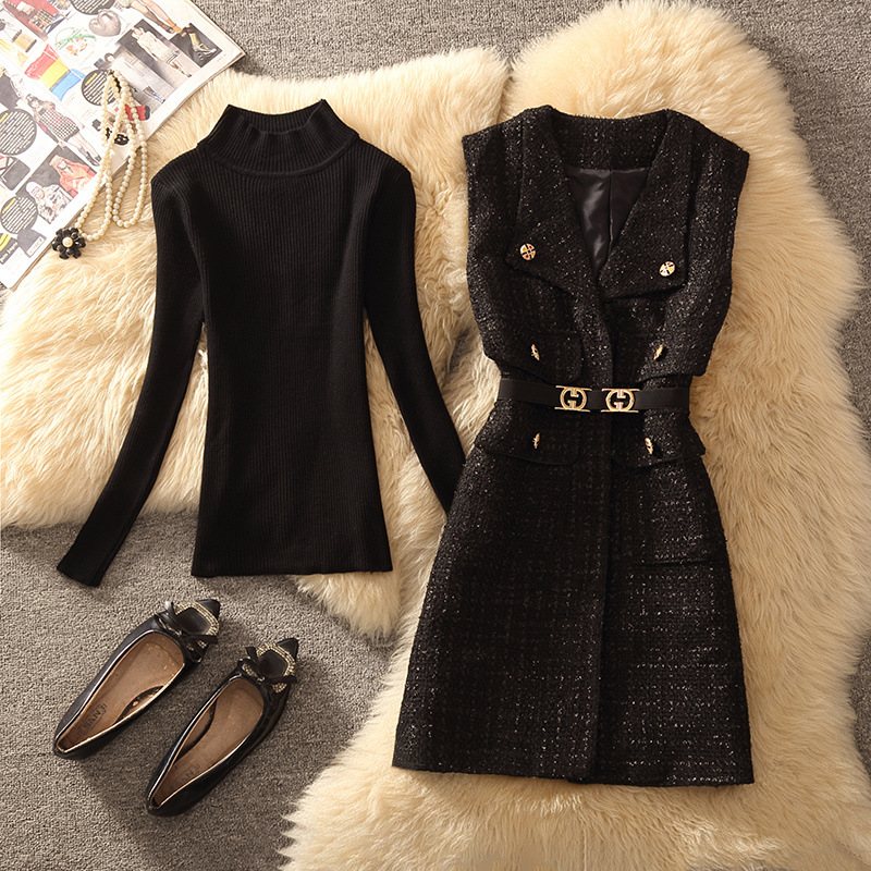 Черный [одинарный жилет]; Черный + черный свитер [комплект из двух предметов]