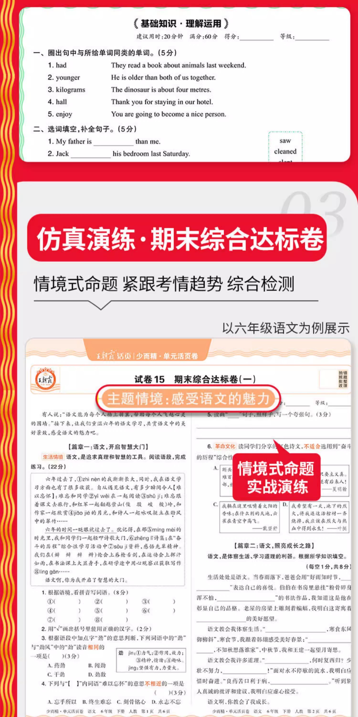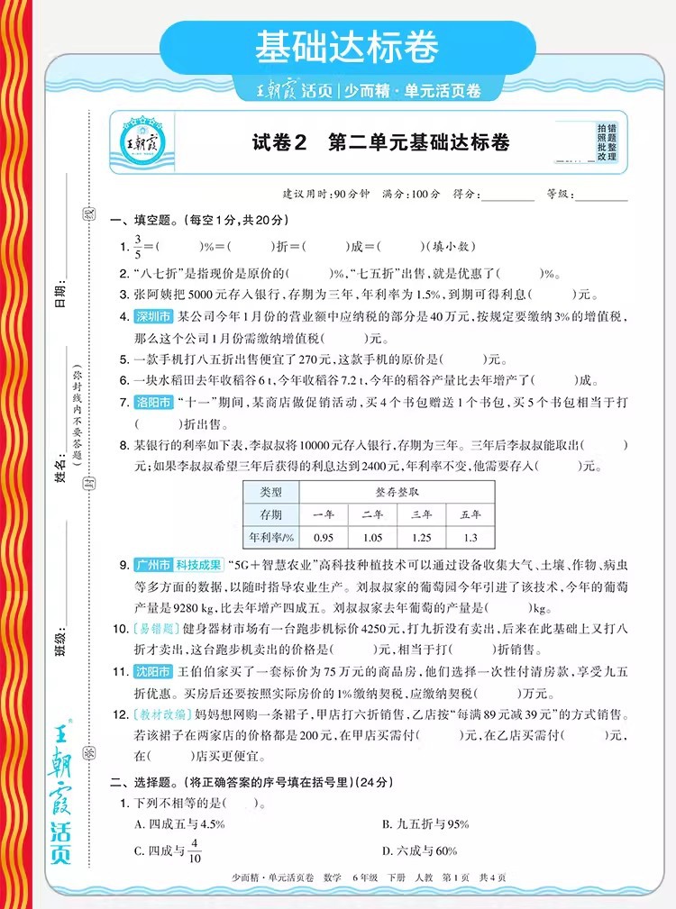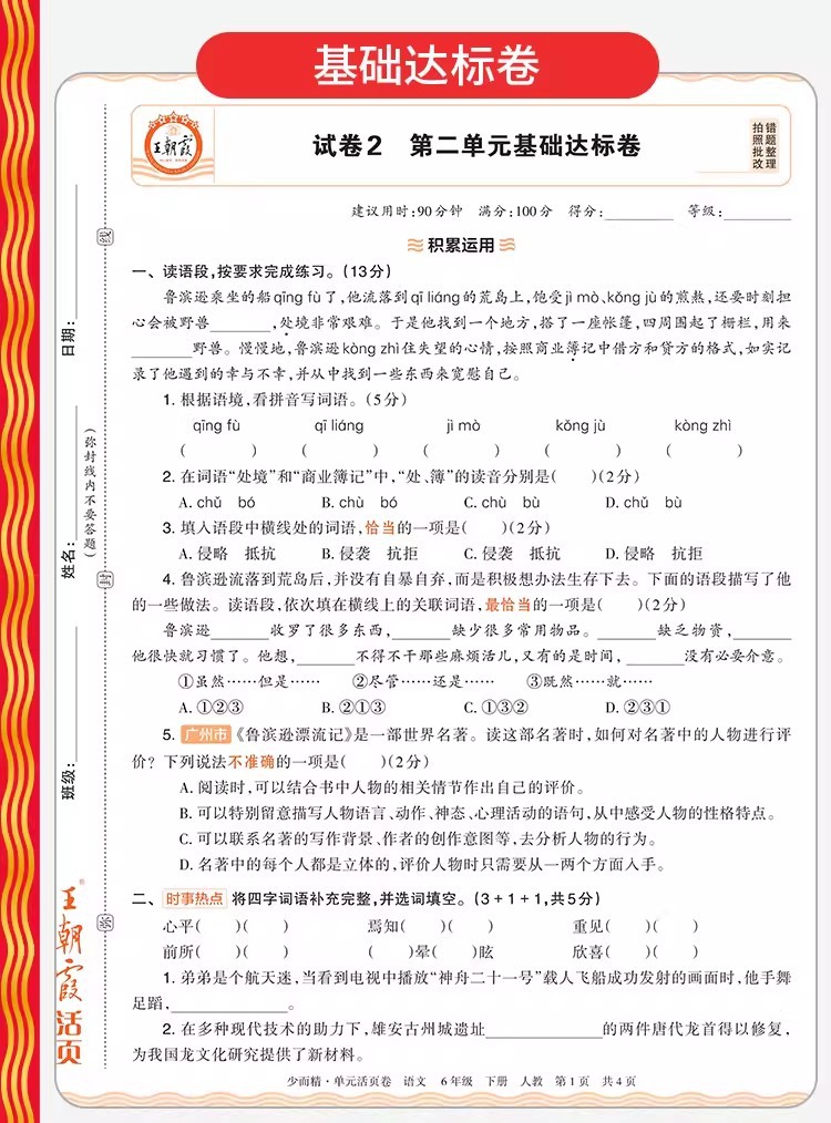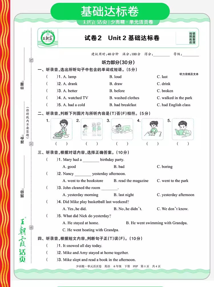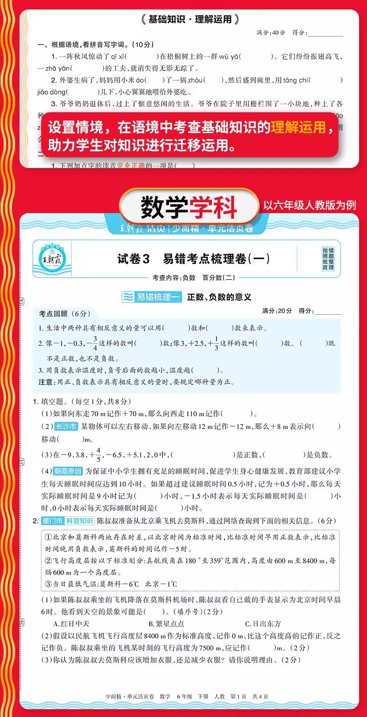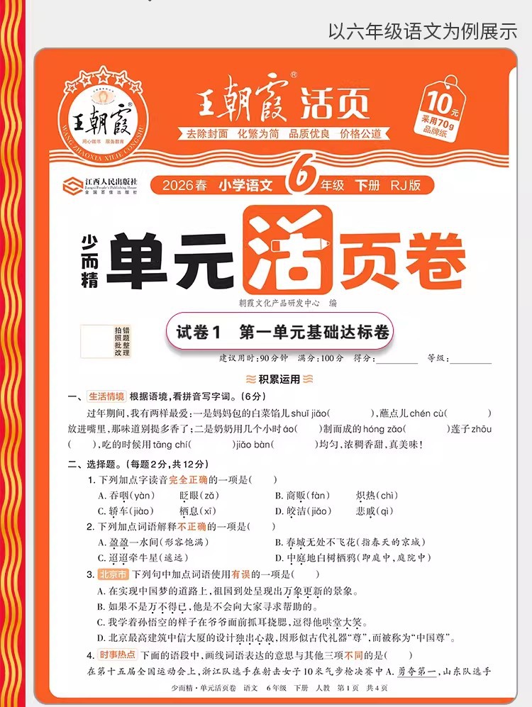 Тестовые задания по китайскому языку, математике и английскому языку для 1-6 классов начальной школы, второй семестр, весна 2026 года, серия Wang Chaonixia.