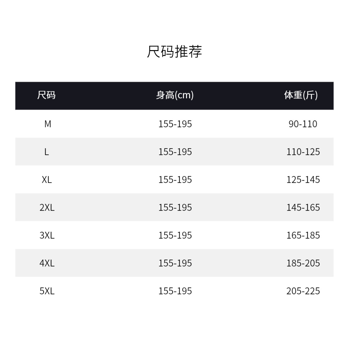 М( 45-55kg ); Л( 55-62.5kg ); XL (62.5-72.5kg ); 2XL( 72.5-82.5kg ); 3XL( 82.5-92.5kg ); 4XL( 92.5-102.5kg ); 5XL( 102.5-112.5kg )